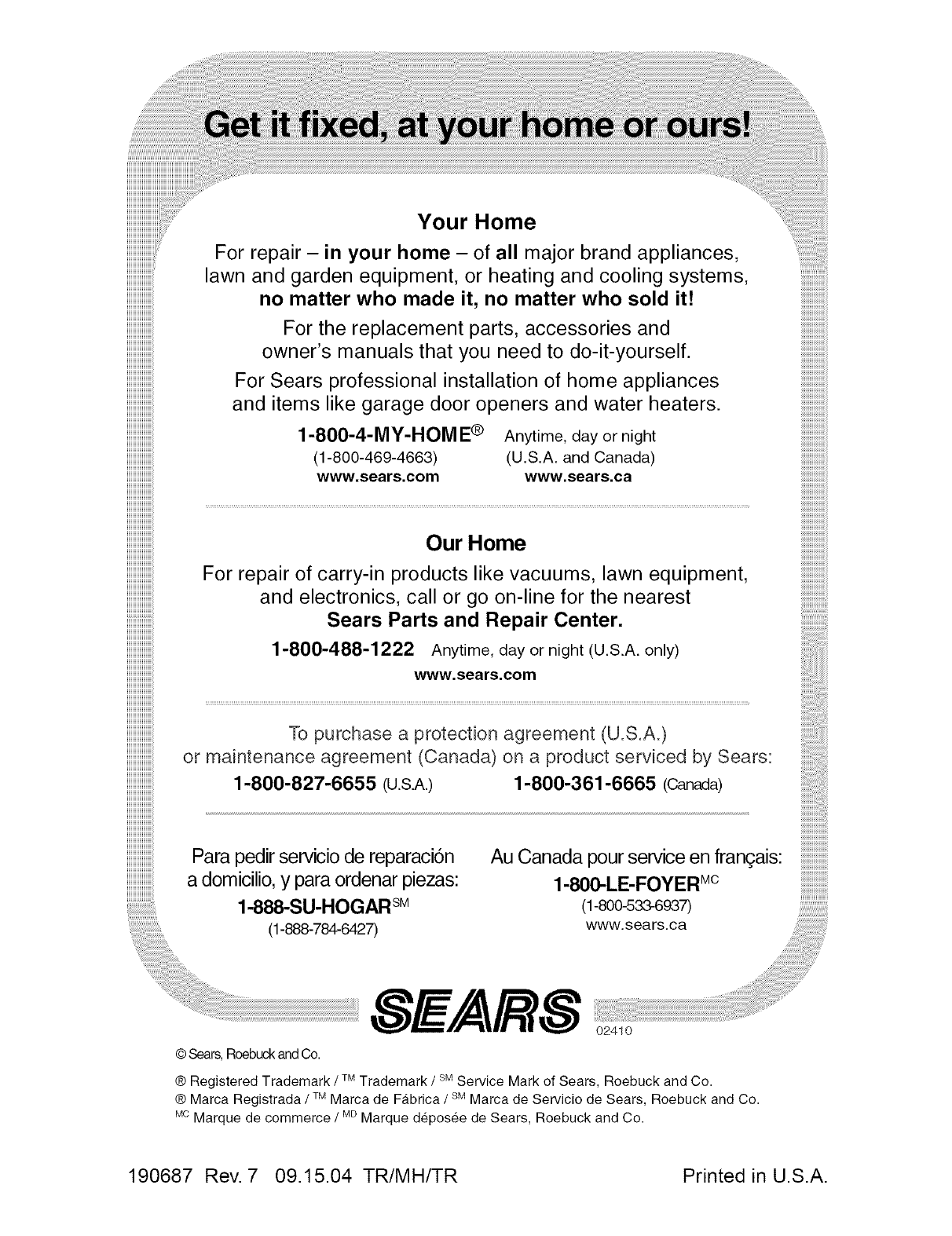 ® Marca Registrada /TMMarca de Fabrica /- Marca de Servicio de Sears, Roebuck and Co.