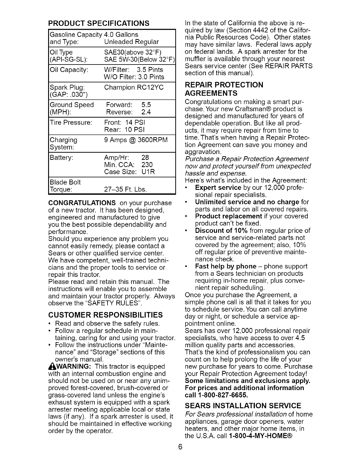 Sears Craftsman Help Line