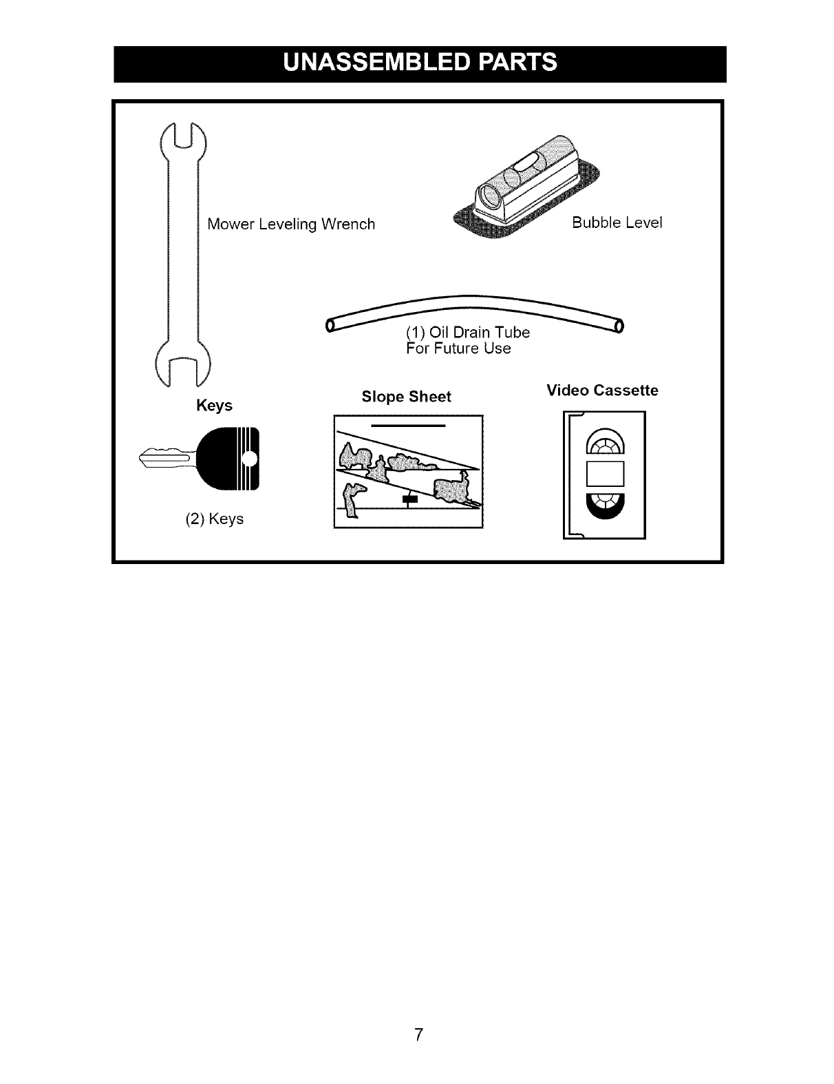 blades,sparkplugs, air cleaners,belts,and oil filters.
