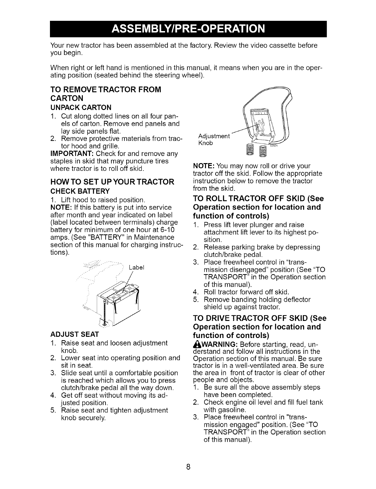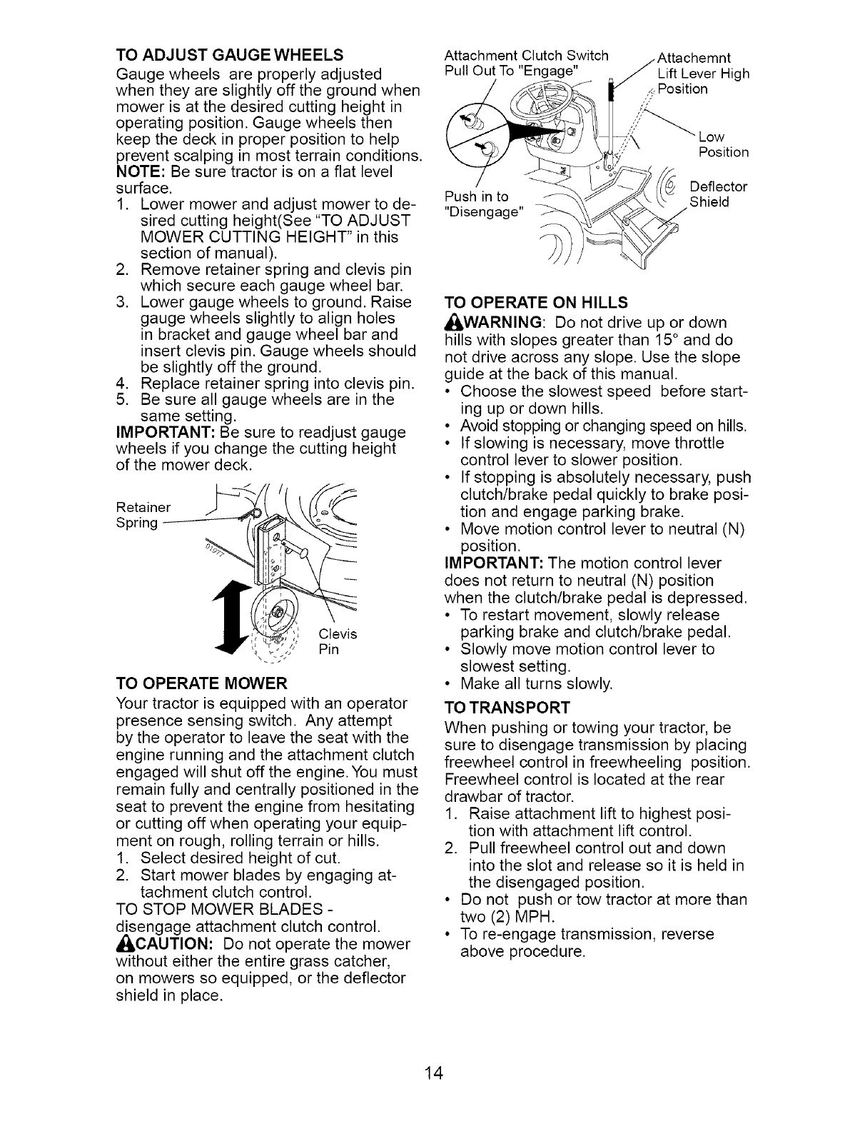 WARNING: To avoid serious injury, operate your tractor up and