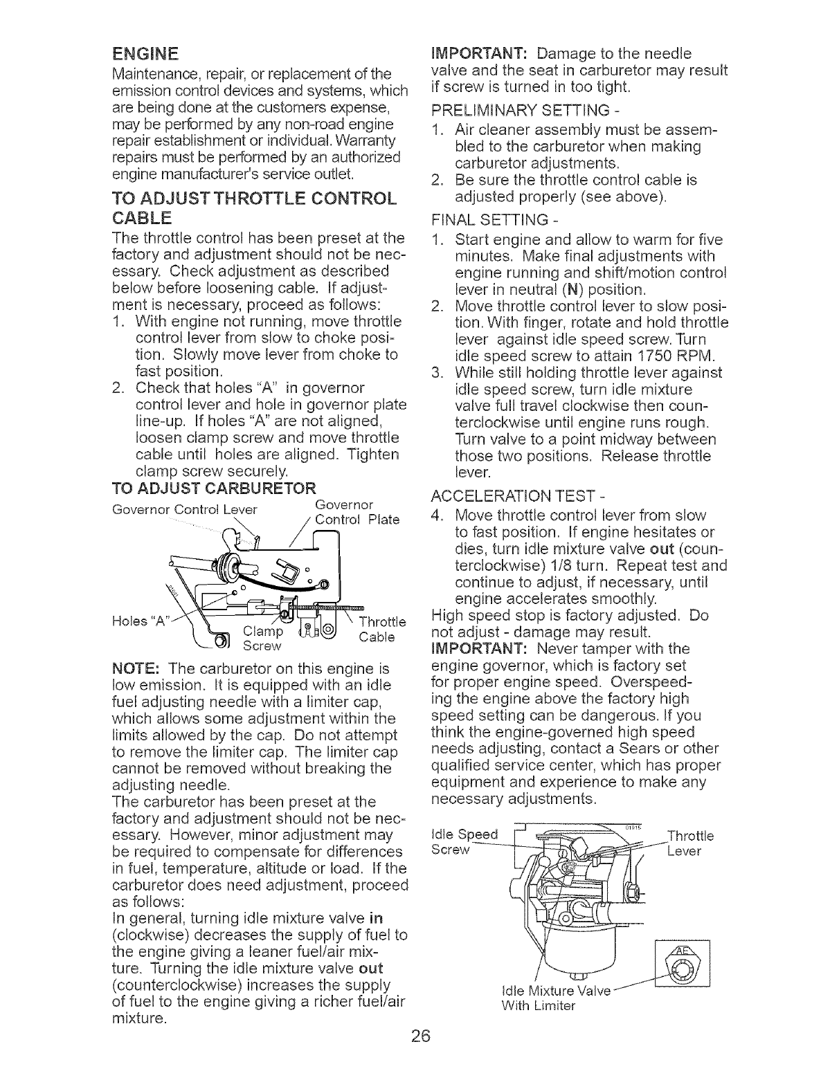 maintained, lubricated and tuned up according to the instructions in the owner's manual,