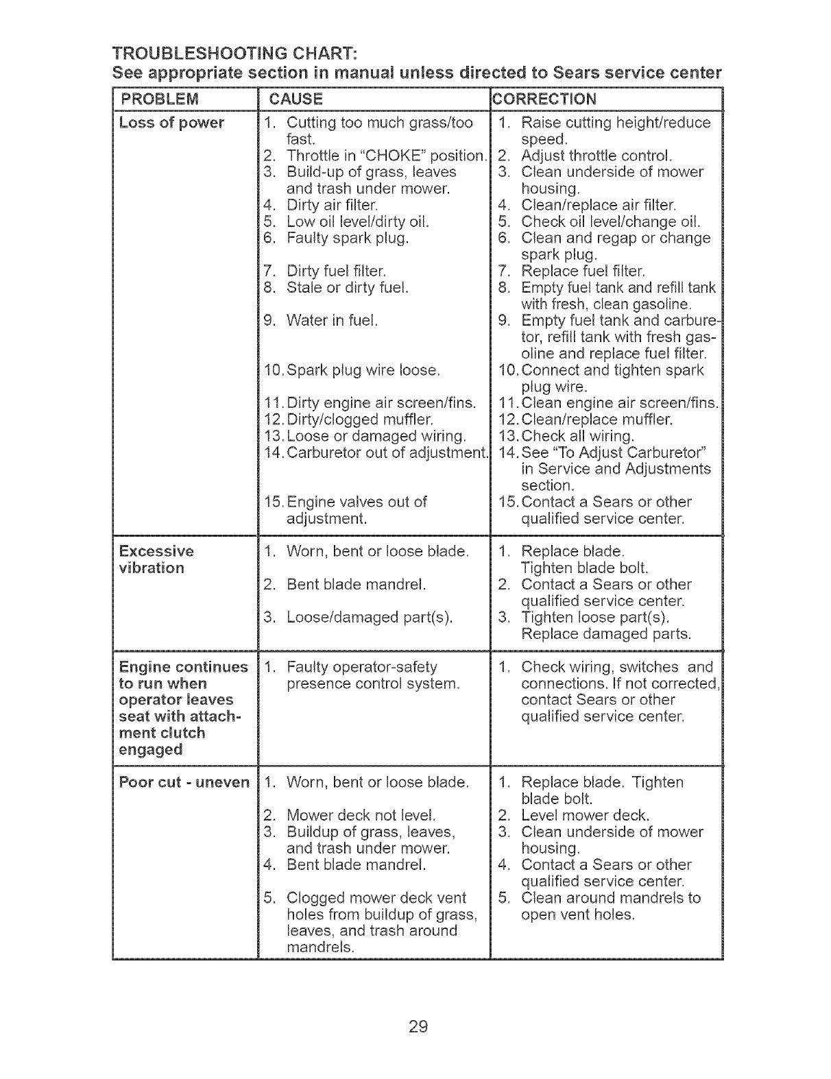 Sears will repair or replace free of charge any parts that are found to be defective in