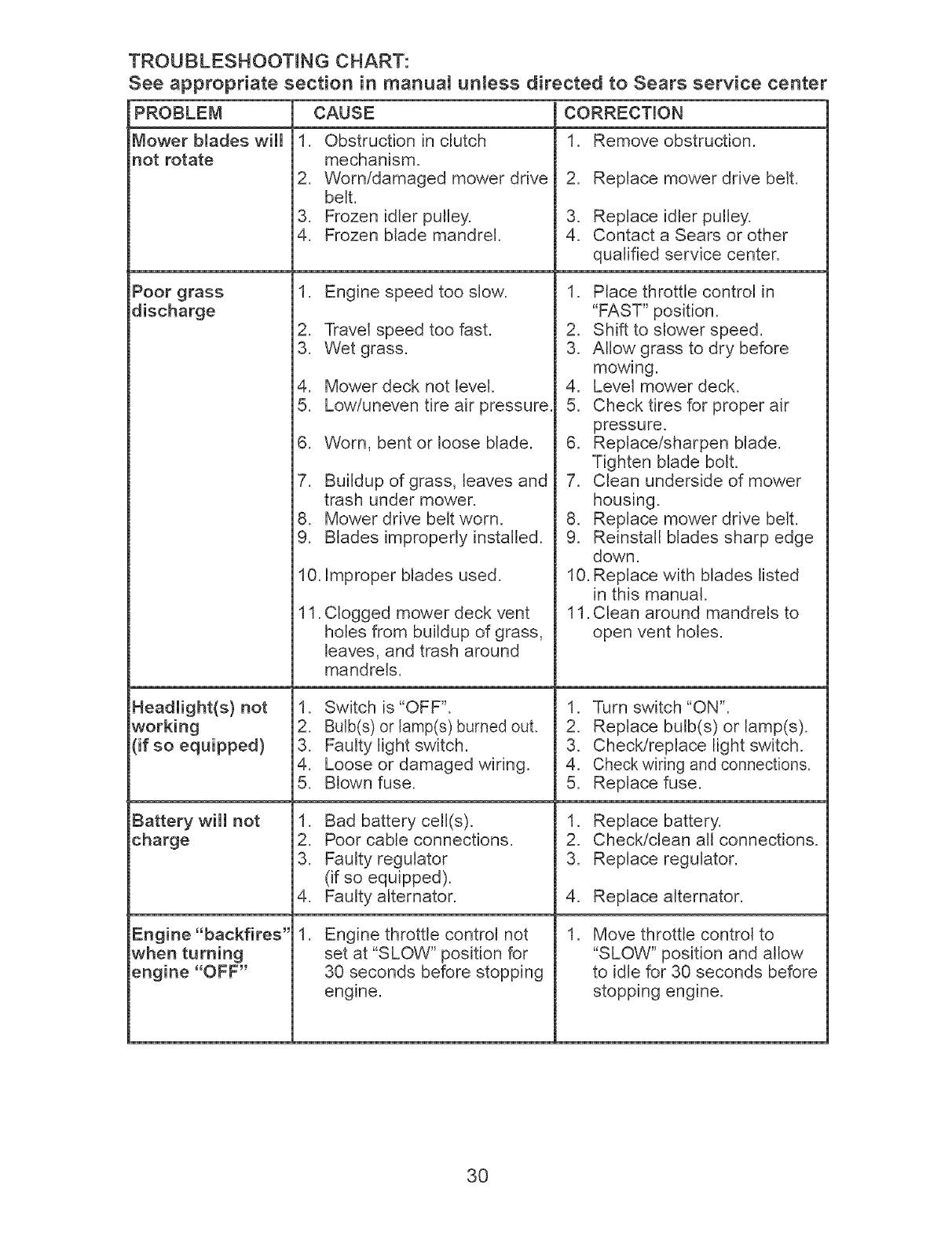 will not hold a charge, Sears will replace the battery at no charge. During the first 30