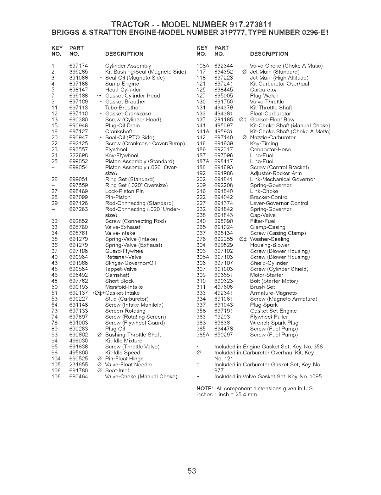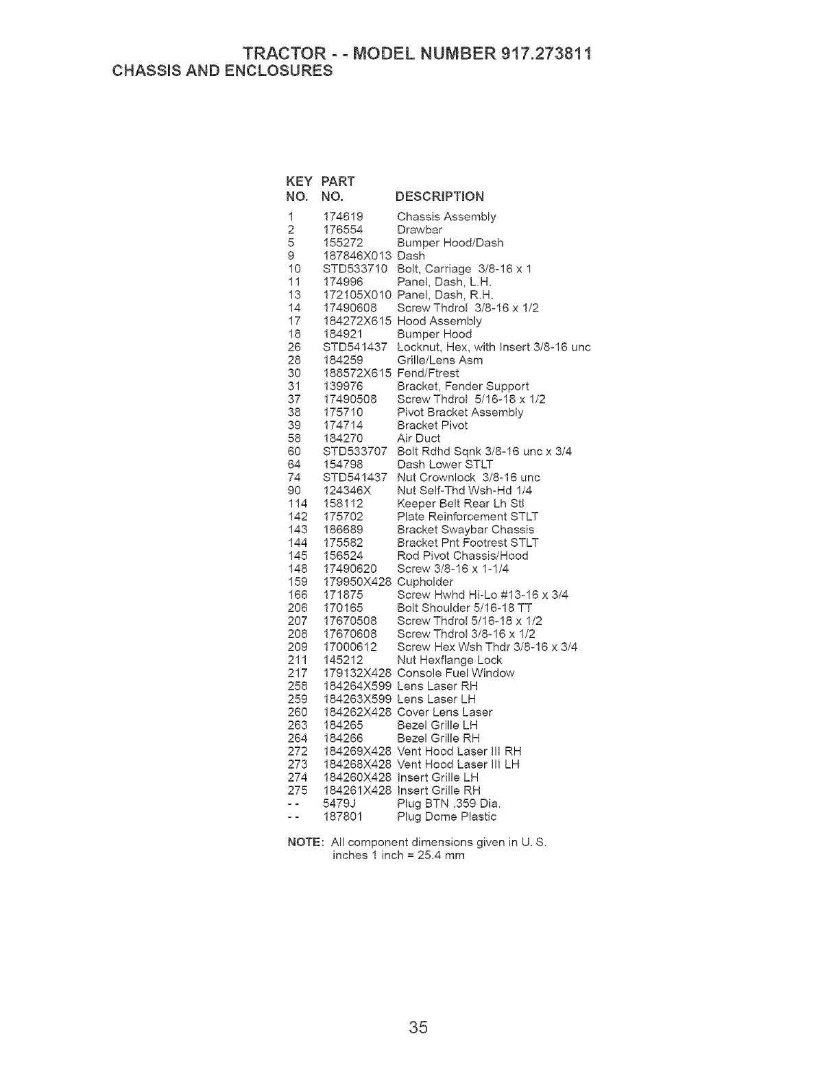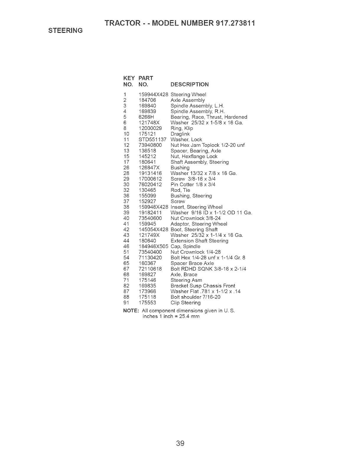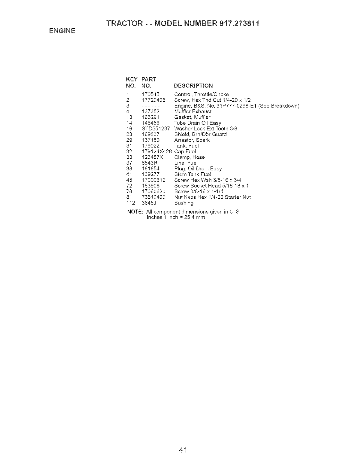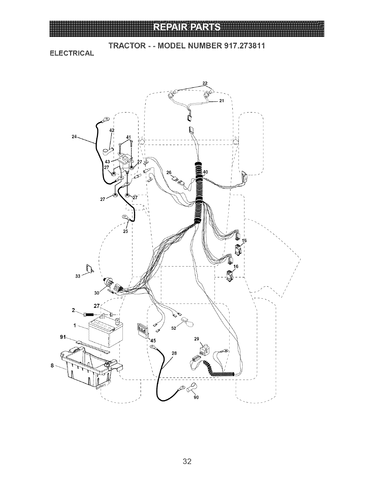 User Manual: Craftsman 917273811 917273811 CRAFTSMAN TRACTOR - Manuals and Guides View the owners manual for your CRAFTSMAN TRACTOR #917273811. Home:Lawn & Garden Parts:Craftsman Parts:Craftsman TRACTOR Manual