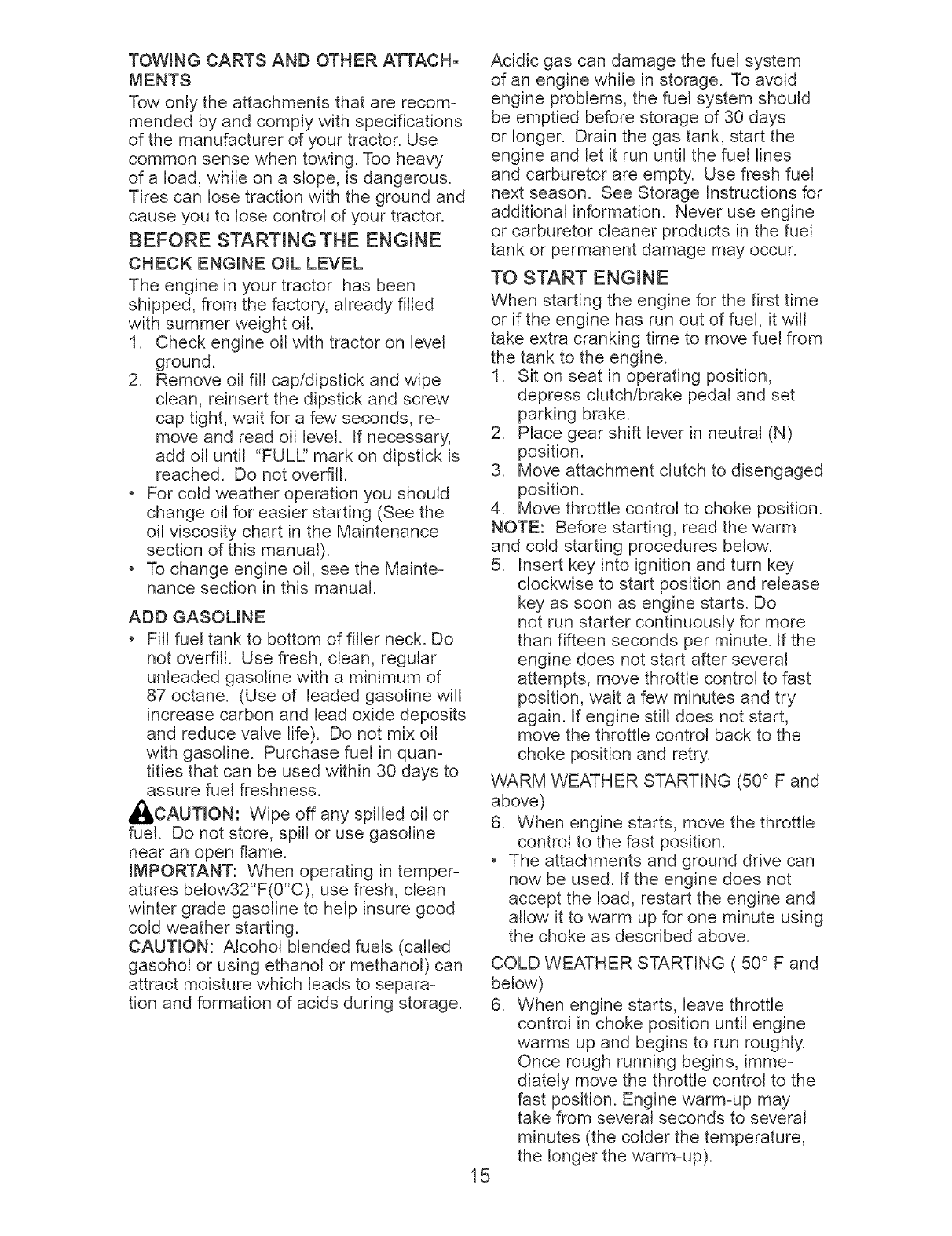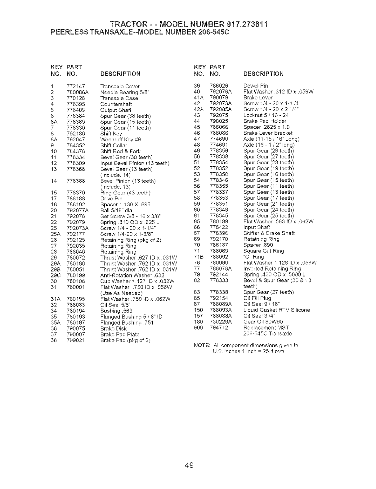 Craftsman 917273811 User Manual TRACTOR Manuals And Guides L0406179
