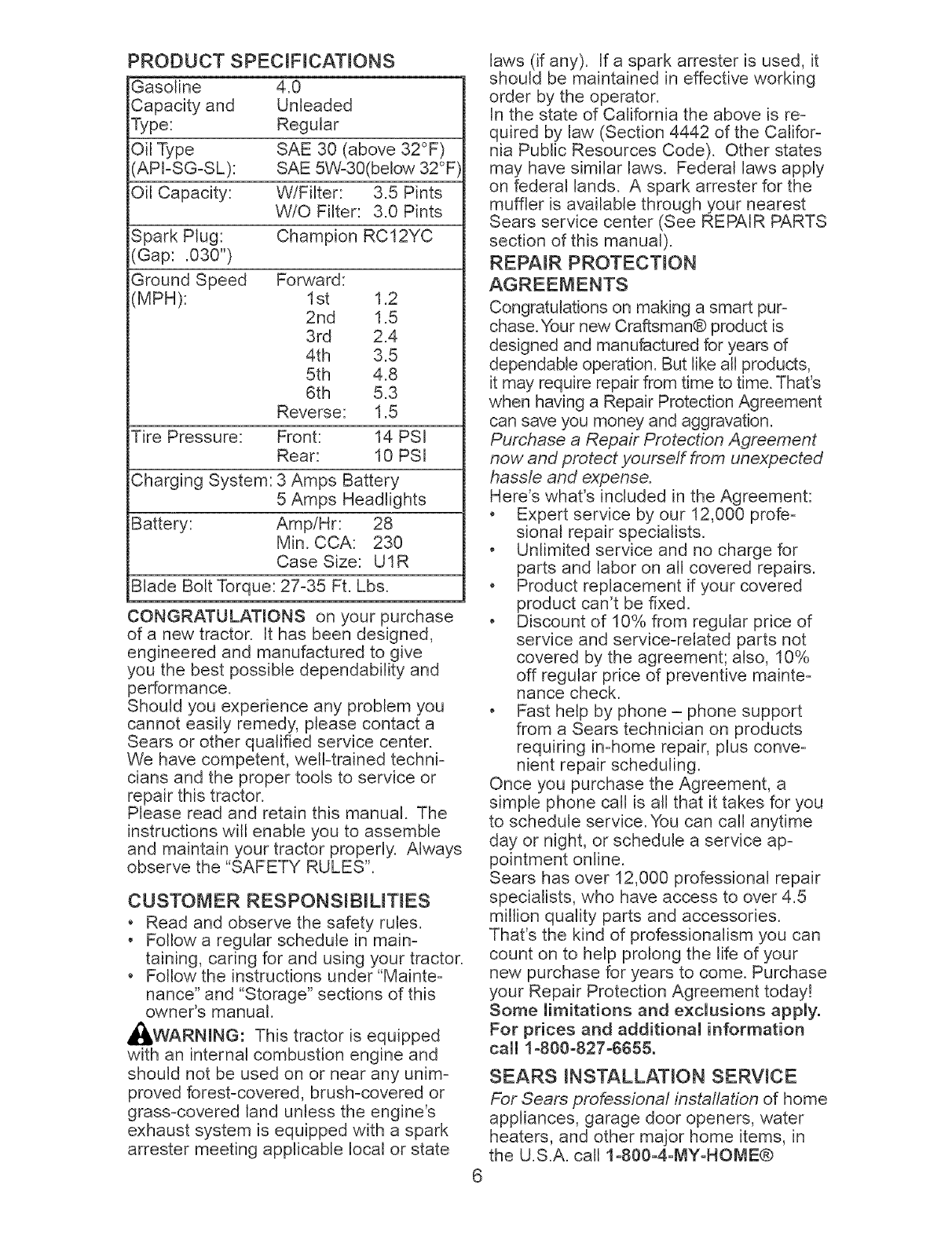 CRAFTSMAN Lawn, Tractor Manual L0406179 CRAFTSMAN Lawn, Tractor Owner's Manual, CRAFTSMAN Lawn, Tractor installation guides