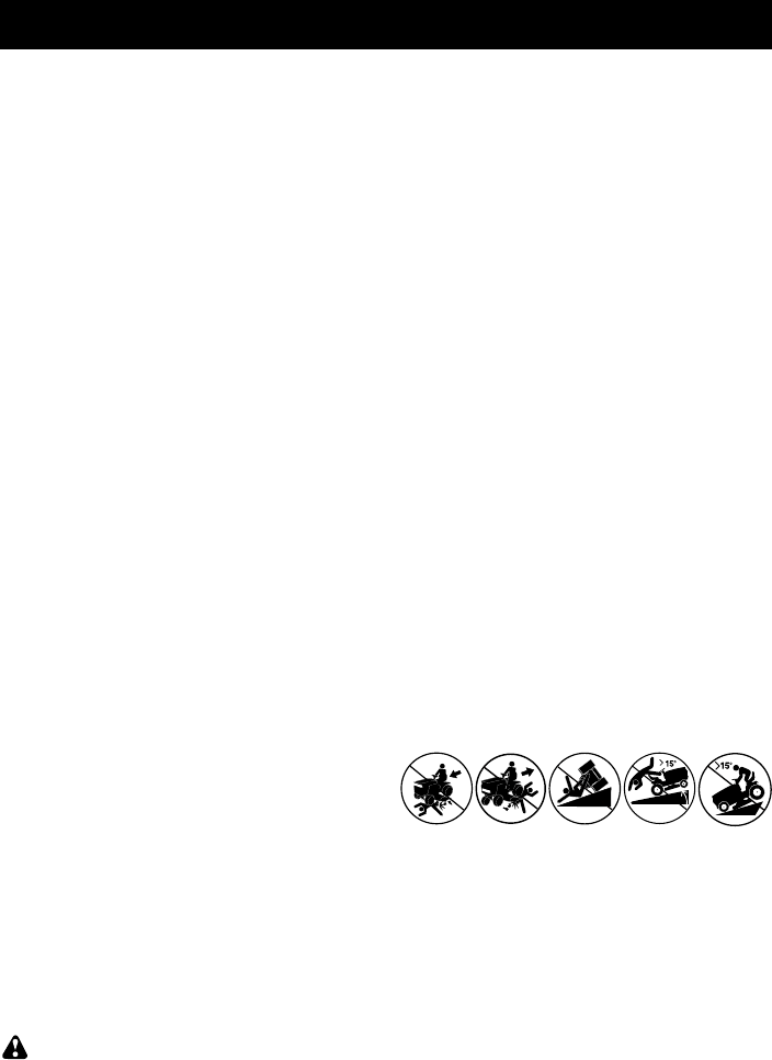 to keep the deck clear of flammable debris, or failure to maintain the riding equipment according to the