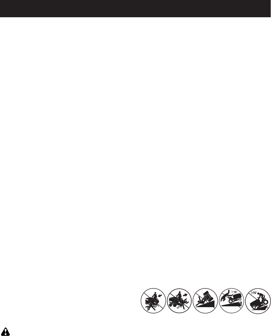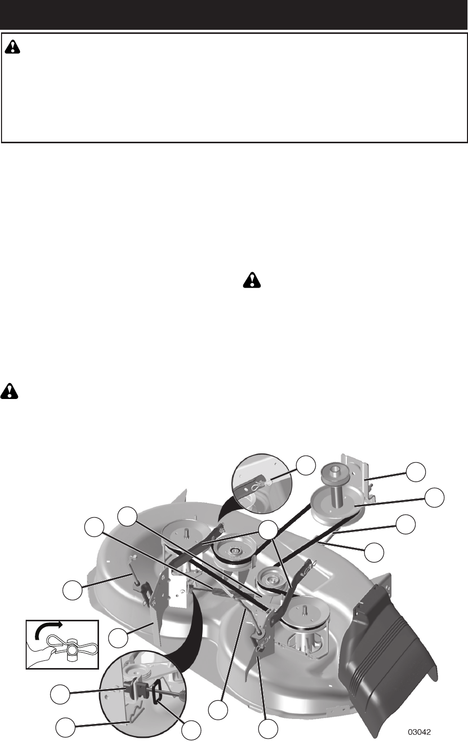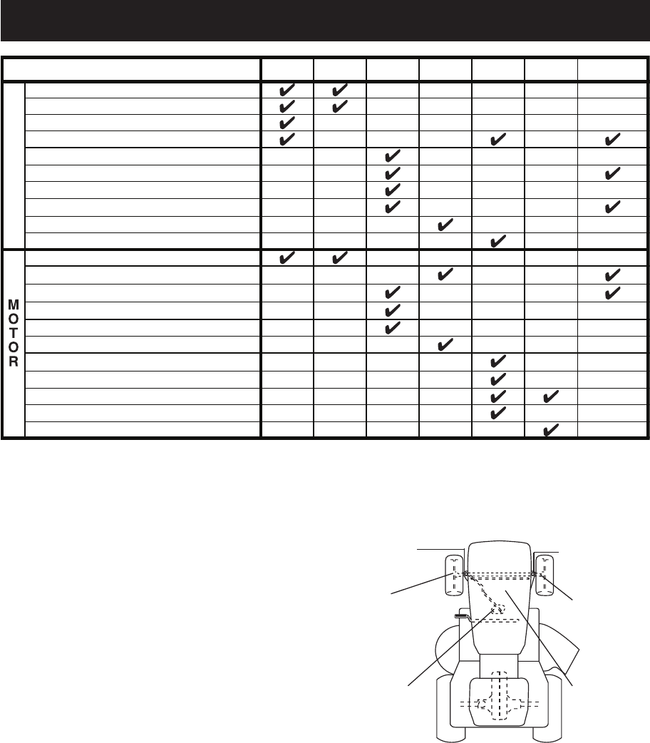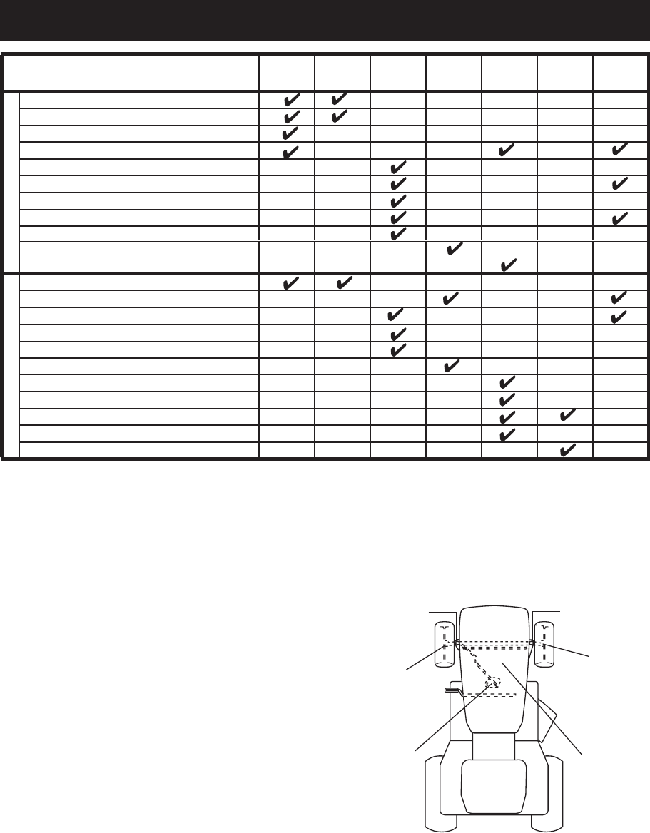 • Standard maintenance servicing, deck leveling, oil changes or tune-ups.