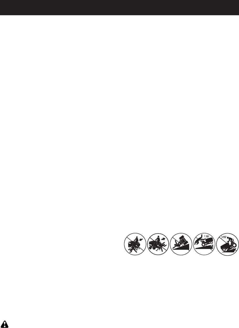 to keep the deck clear of flammable debris, or failure to maintain the riding equipment according to the