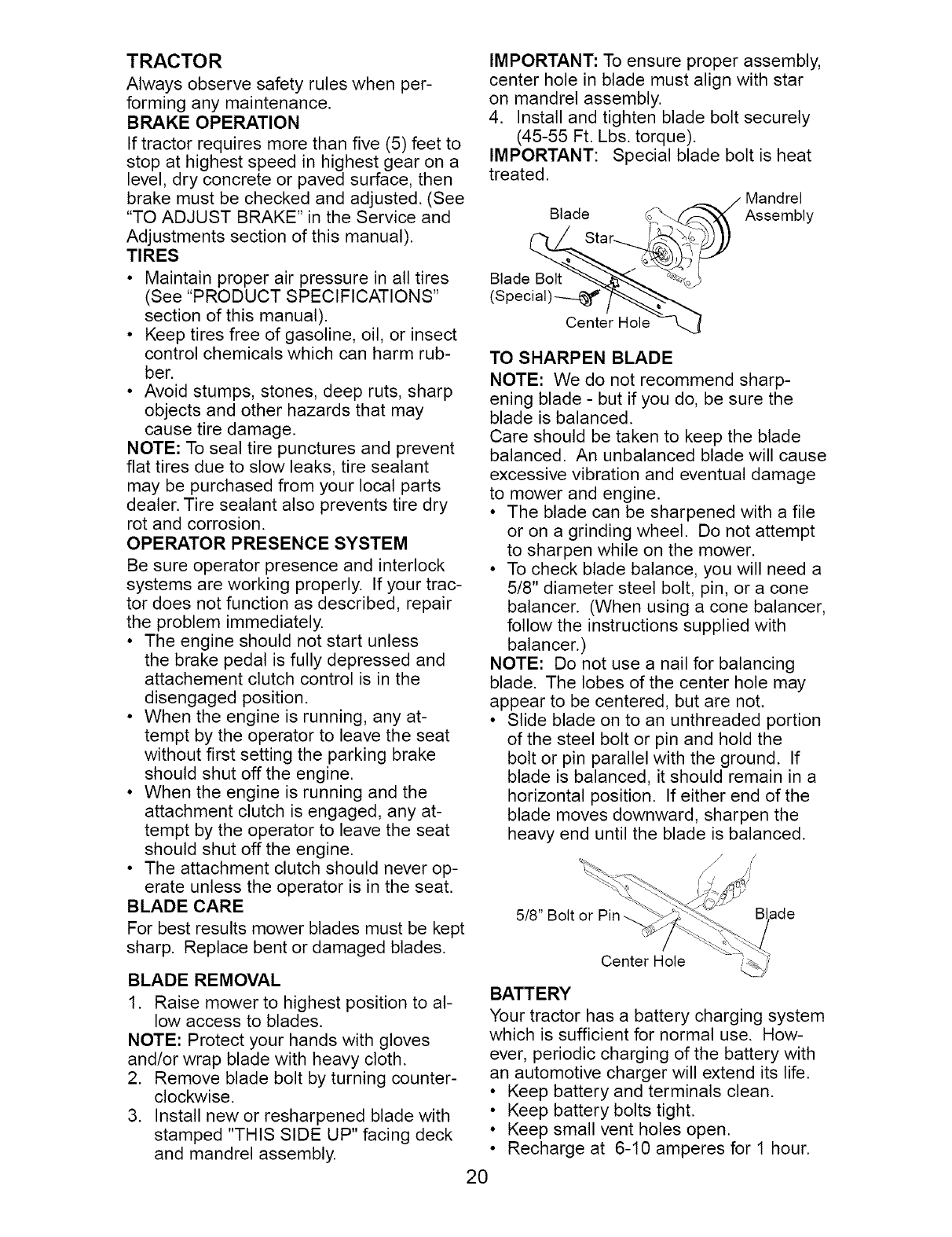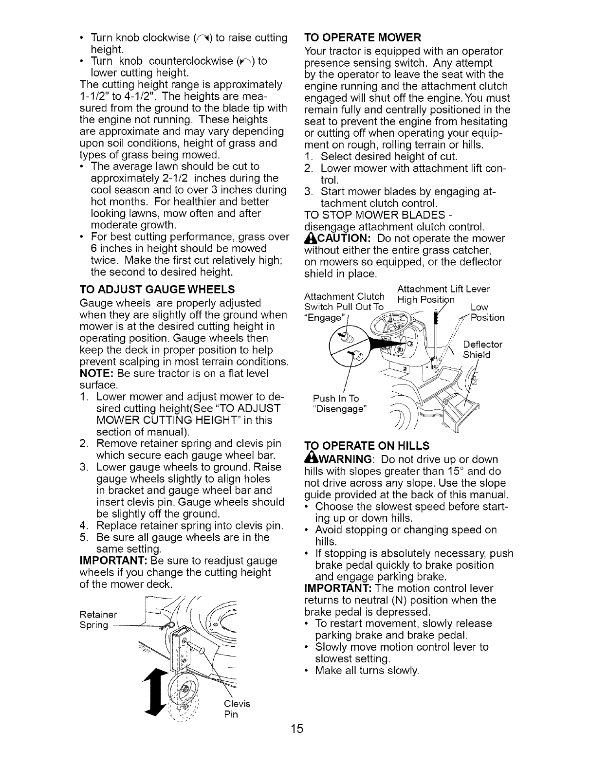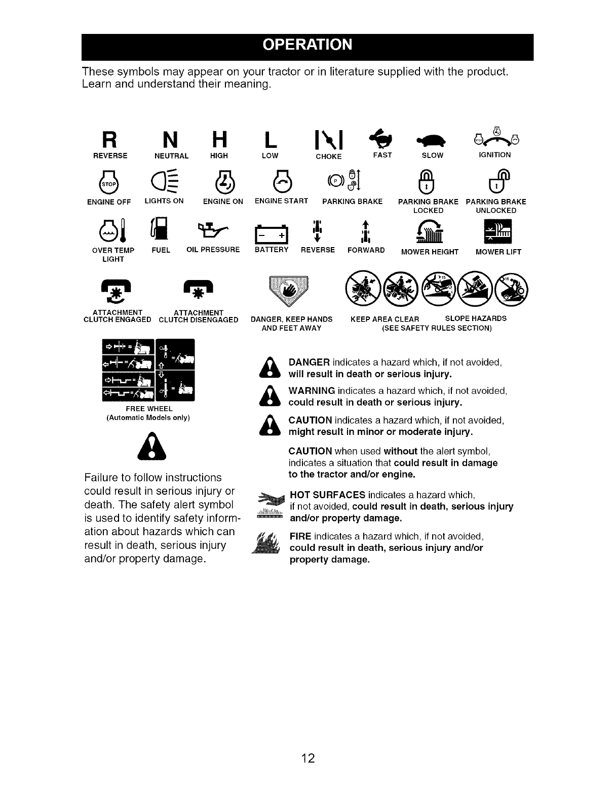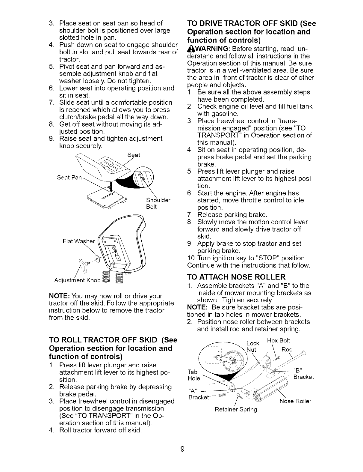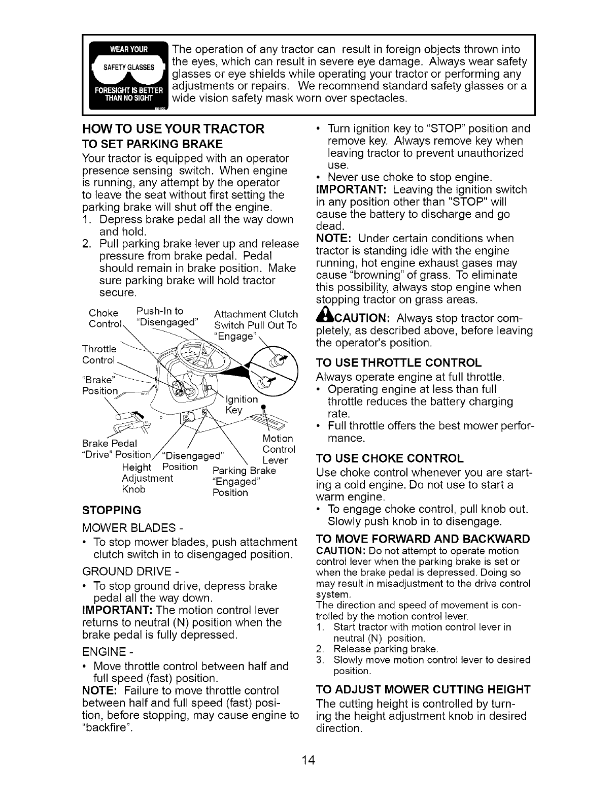 _ARNING: To avoid serious injury, operate your tractor up and