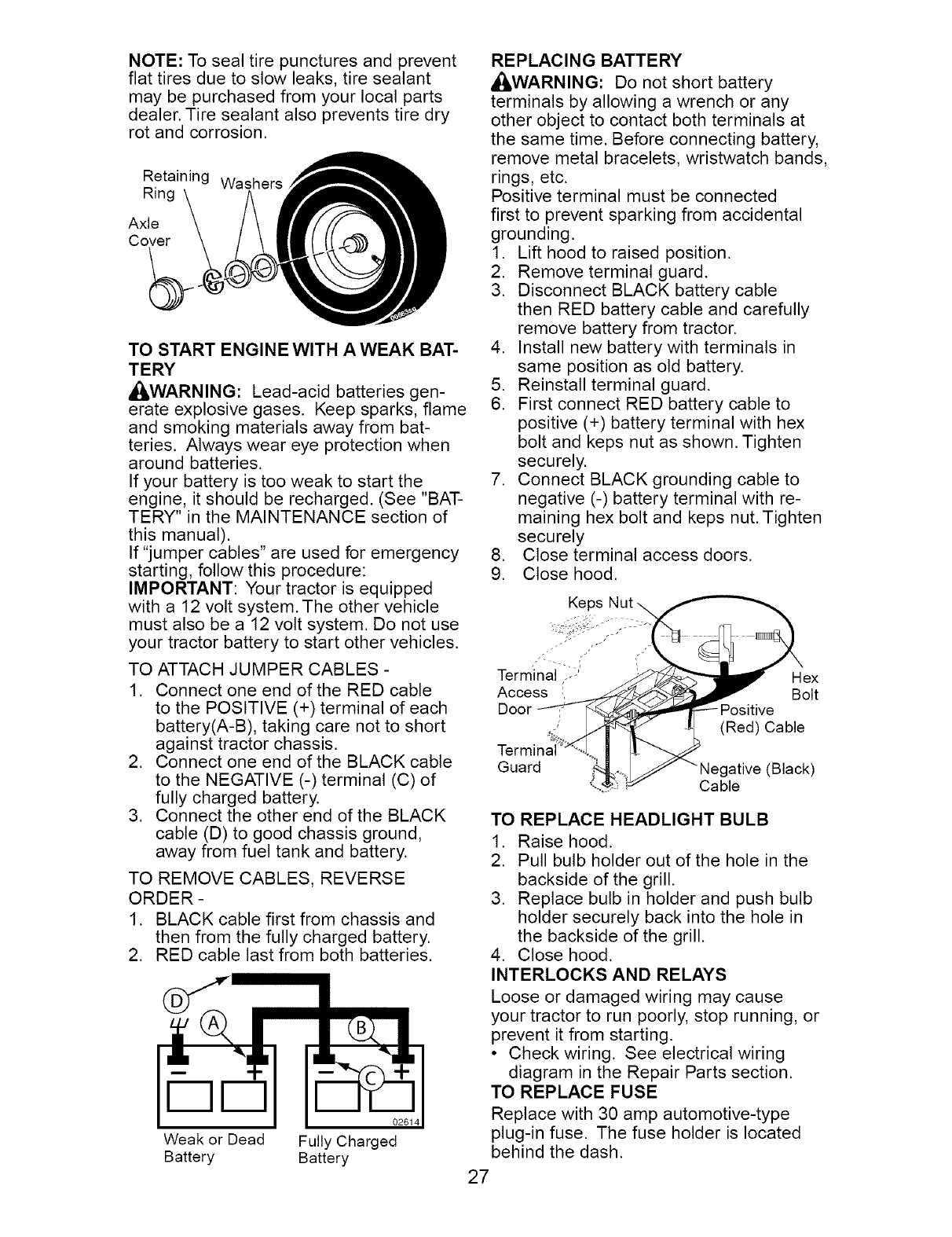 will not hold a charge, Sears will replace the battery at no charge. During the first 30