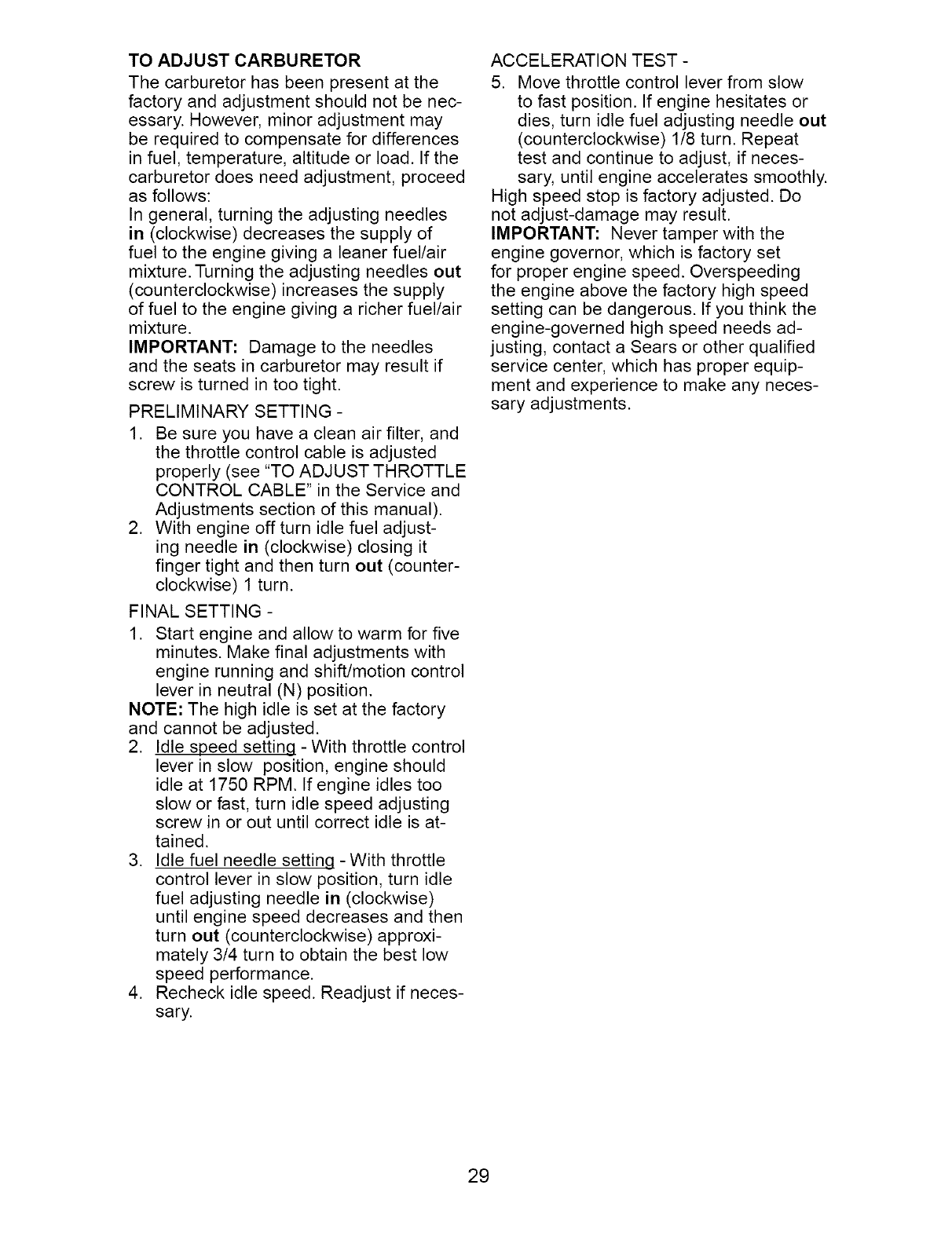 maintained, lubricated and tuned up according to the instructions in the owner's manual,