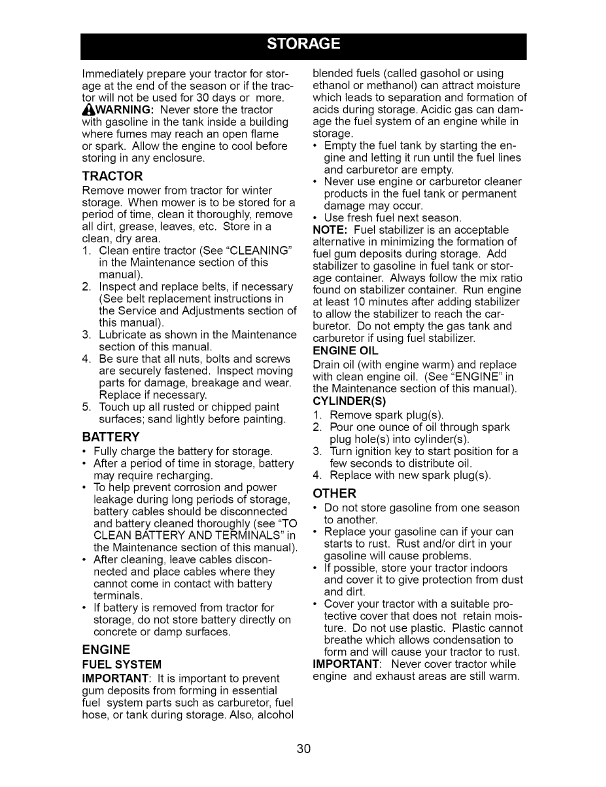 nated or oxidized (stale). In general, fuel should be used within 30 days of its pur-