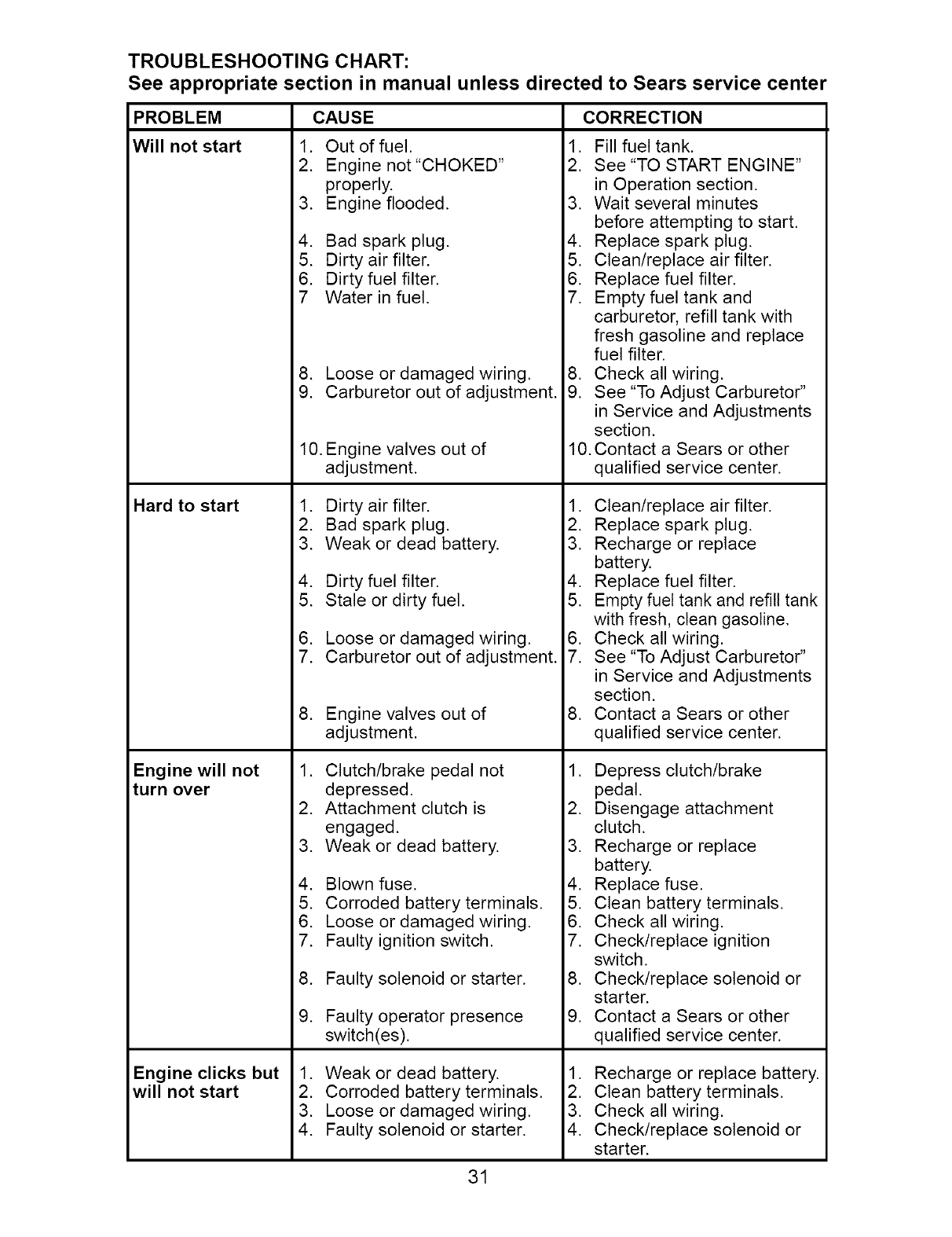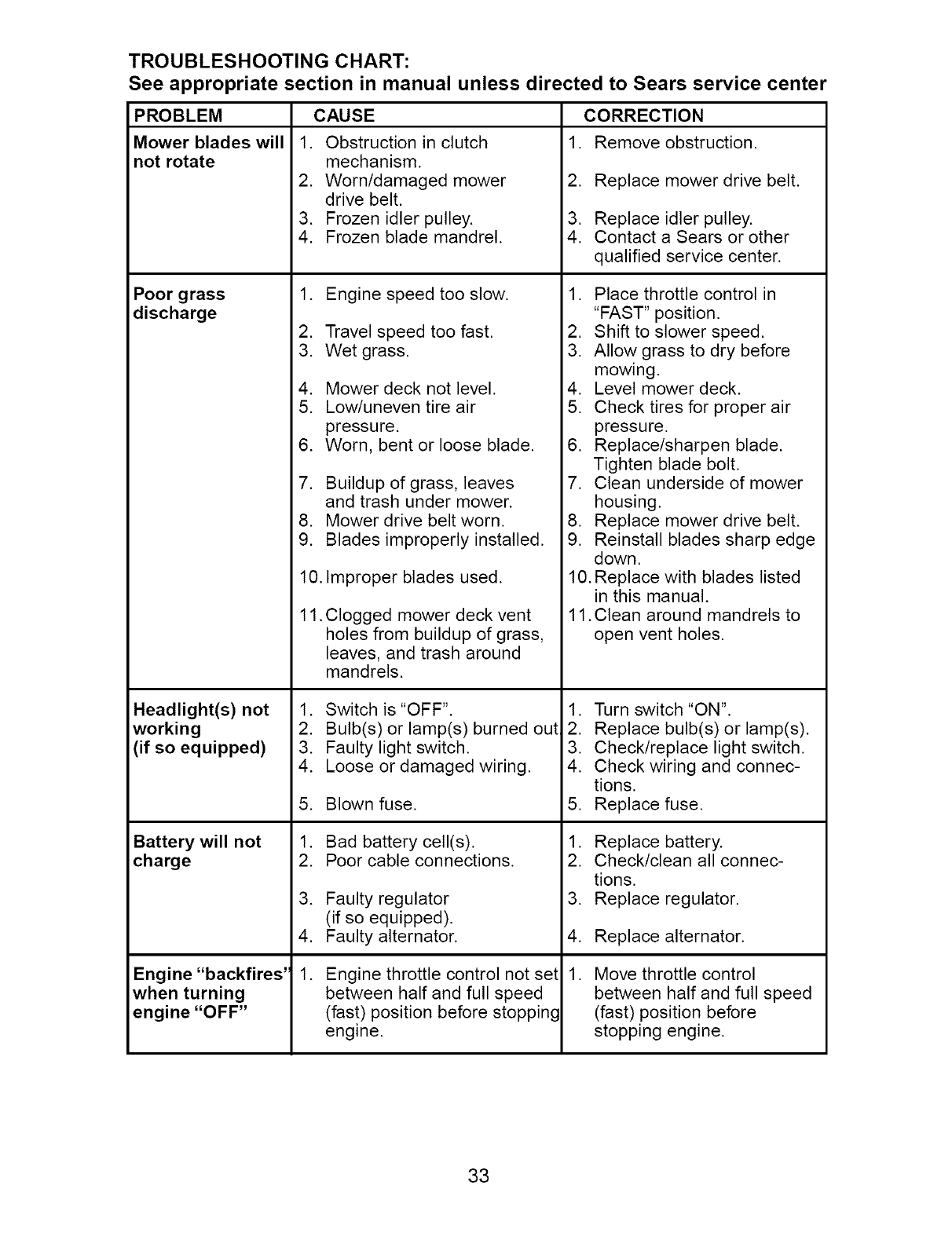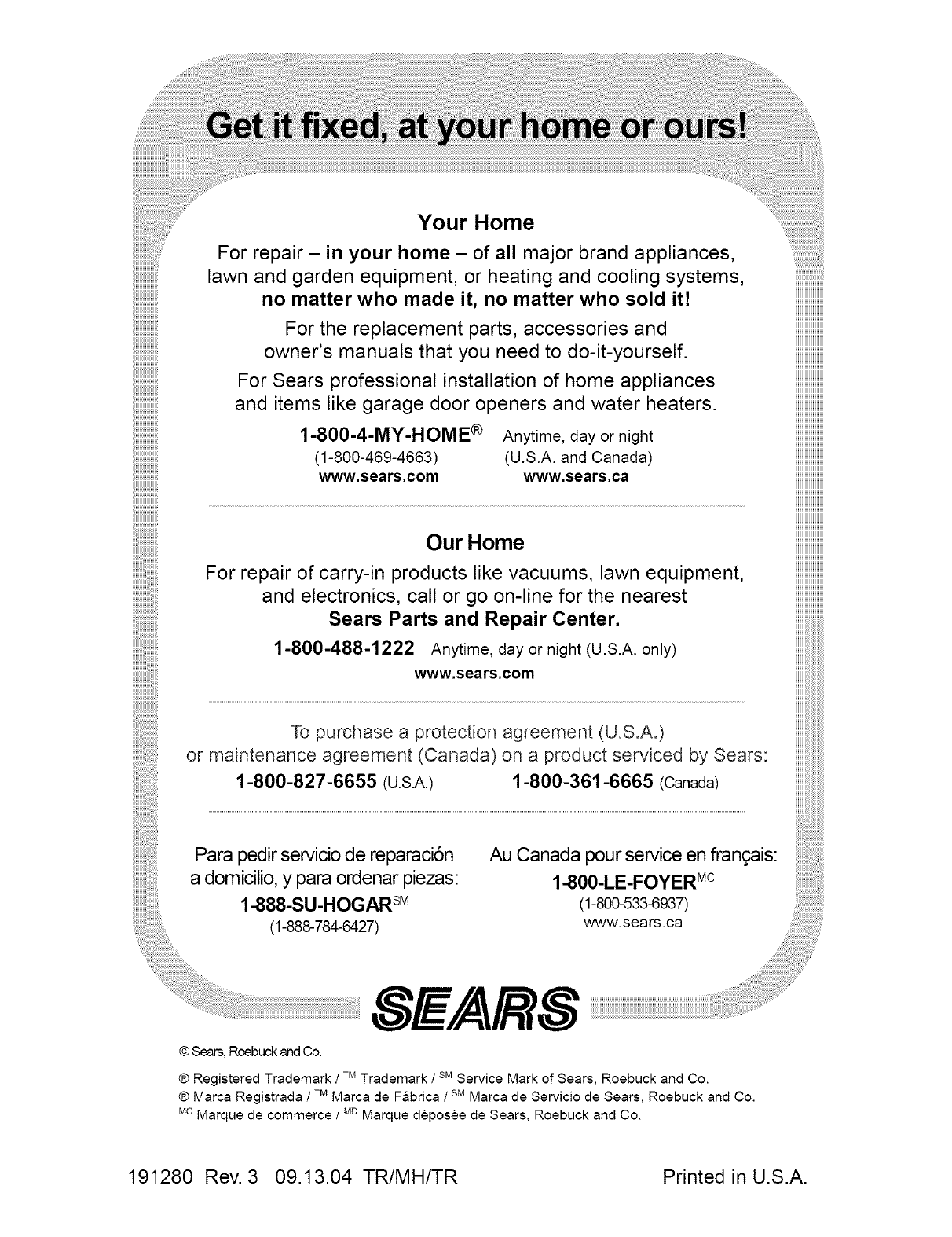 Sears Service ........................ Back Cover