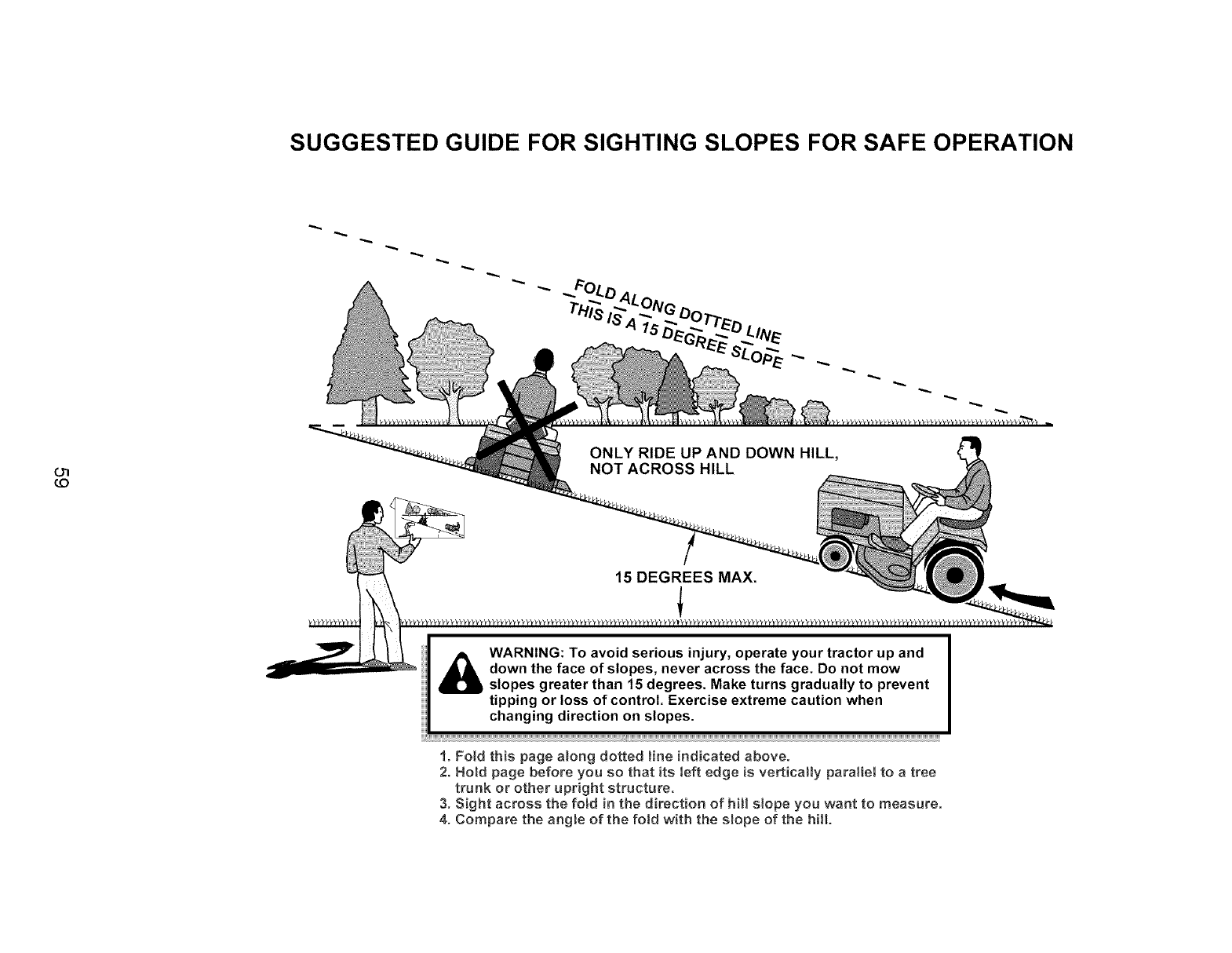 slopes greater than 15 degrees. Make turns gradually to prevent