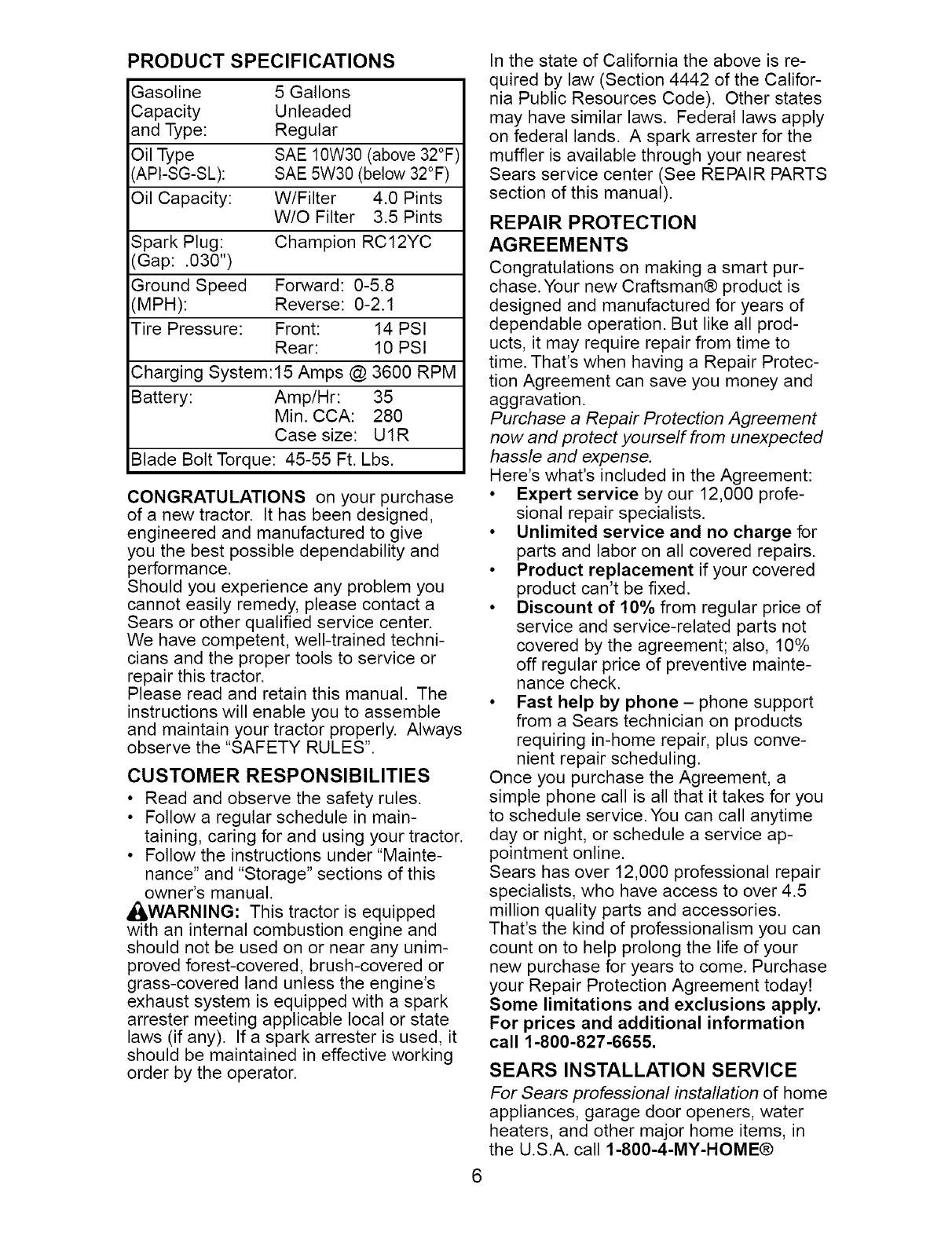 Sears Craftsman Help Line
