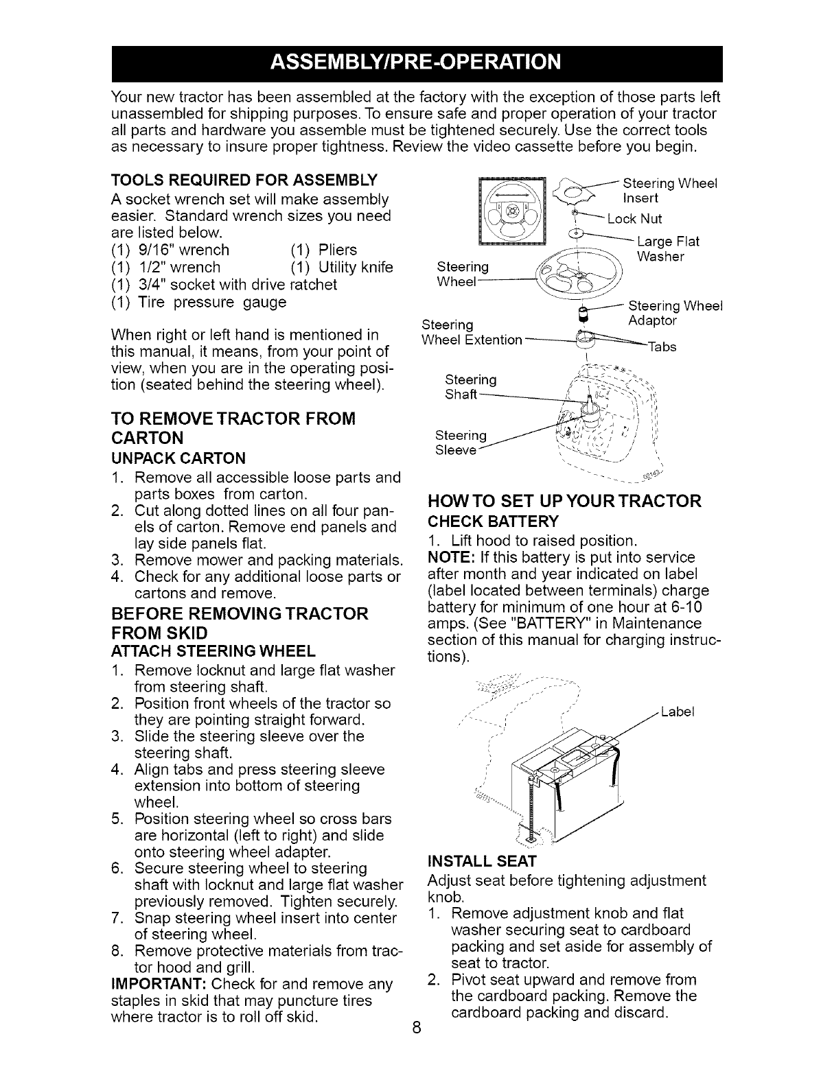Assembly/Pre-Operation ....................... 8