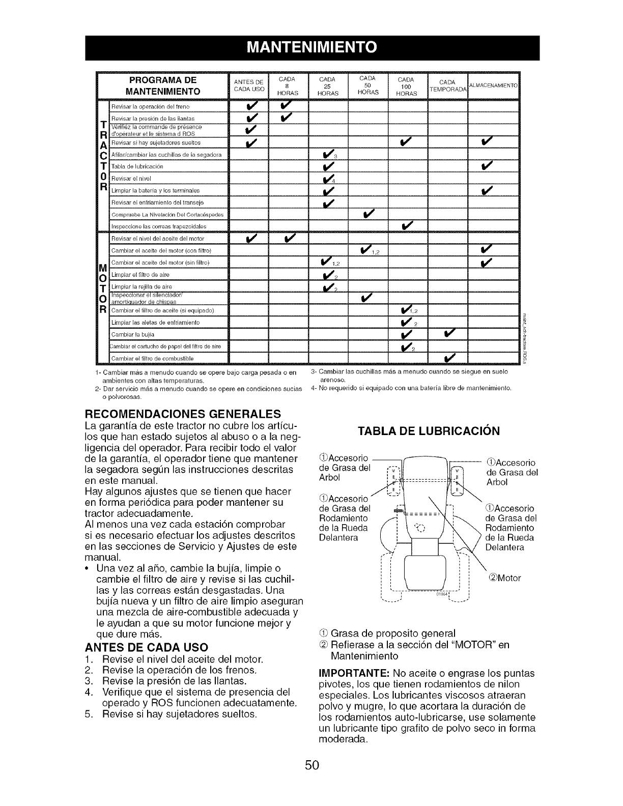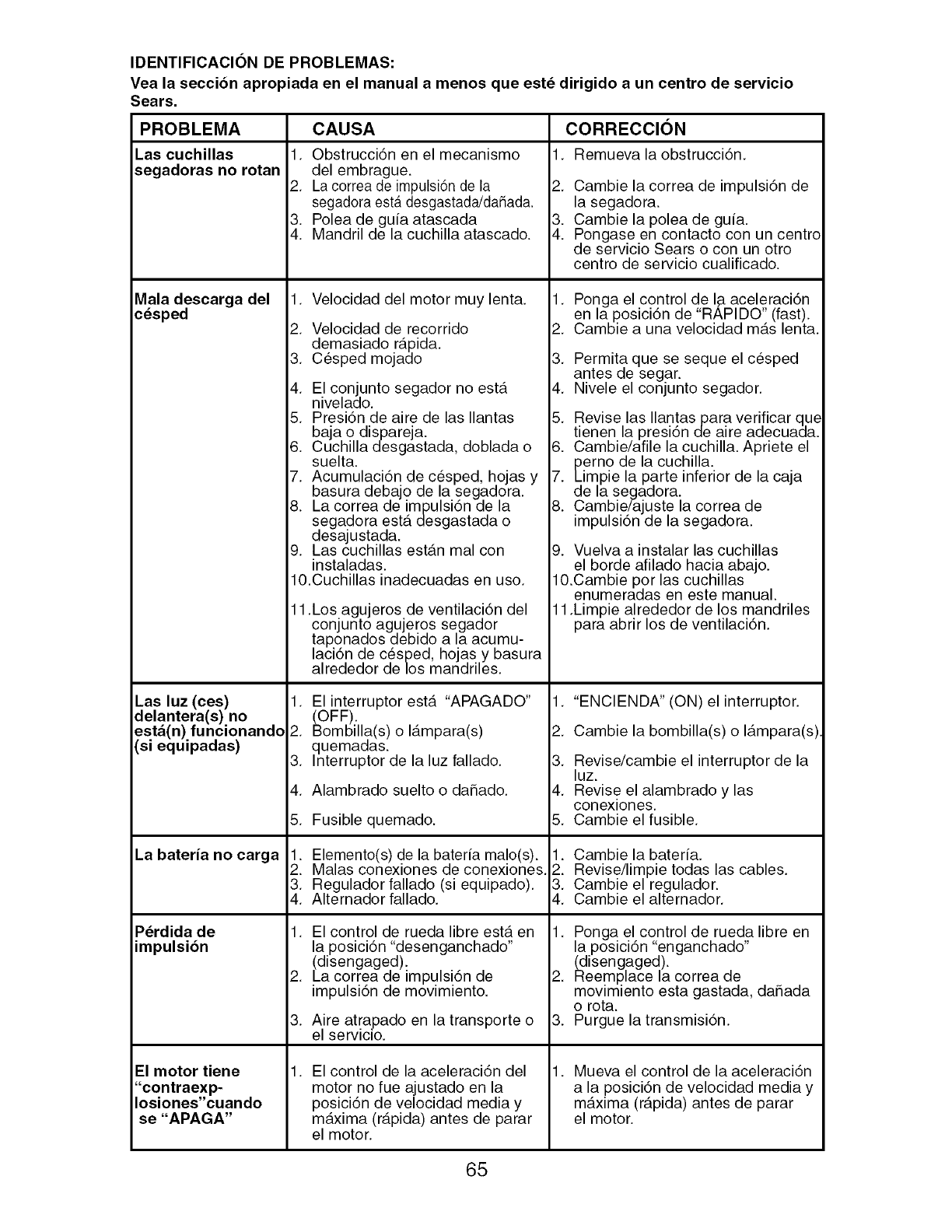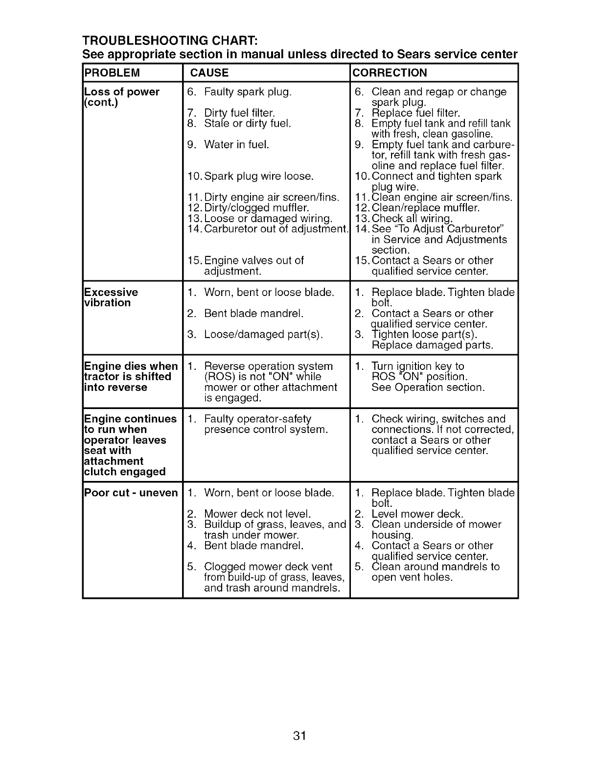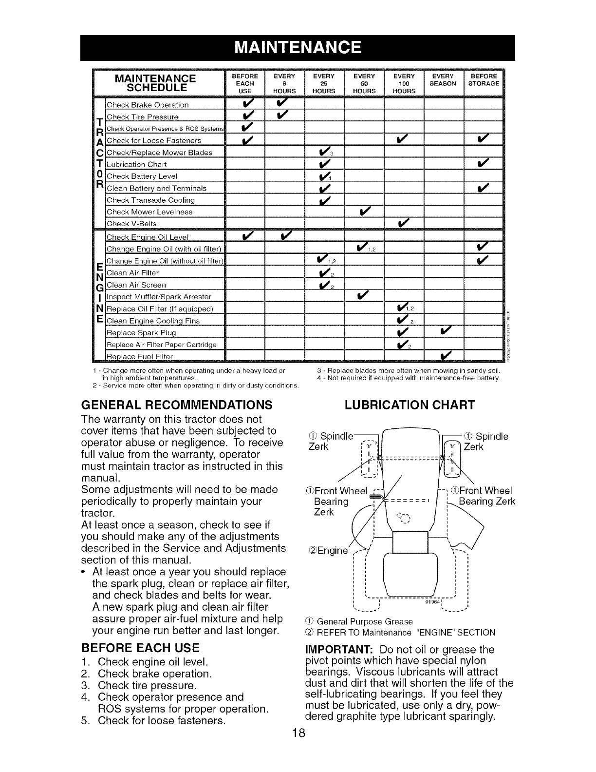 blades, spark plugs, air cleaners, belts, and oil filters.