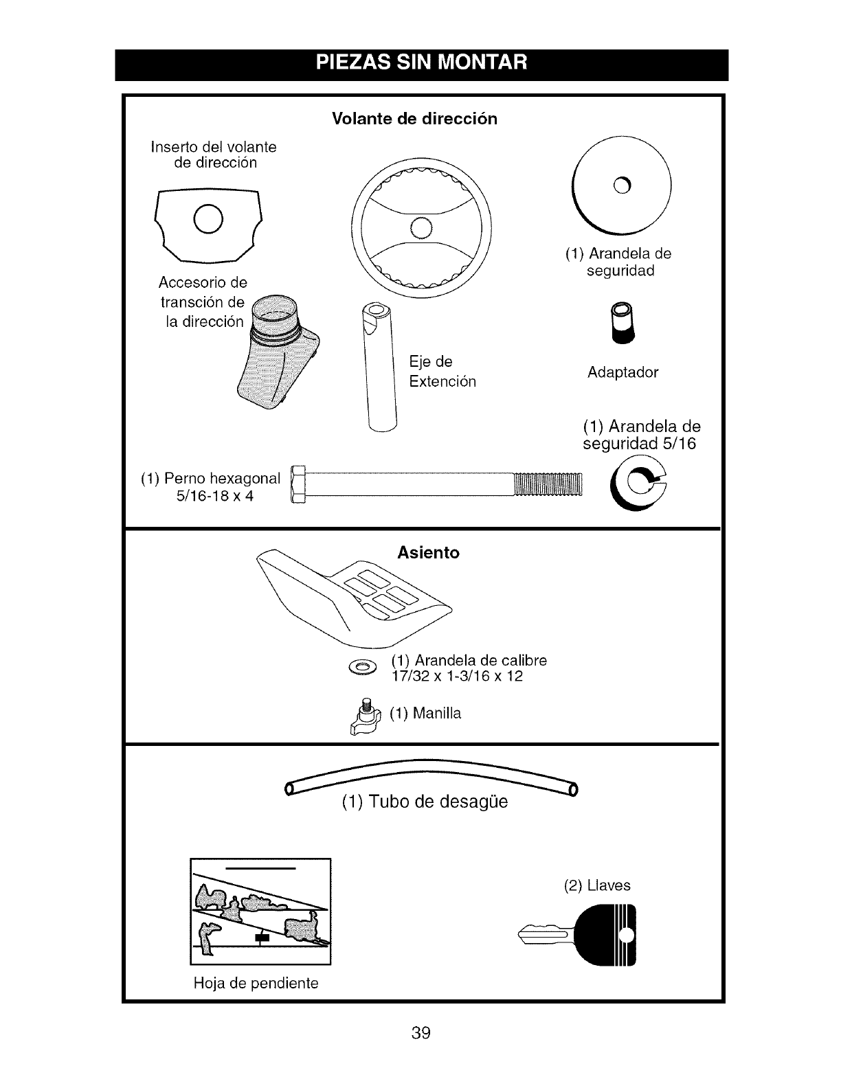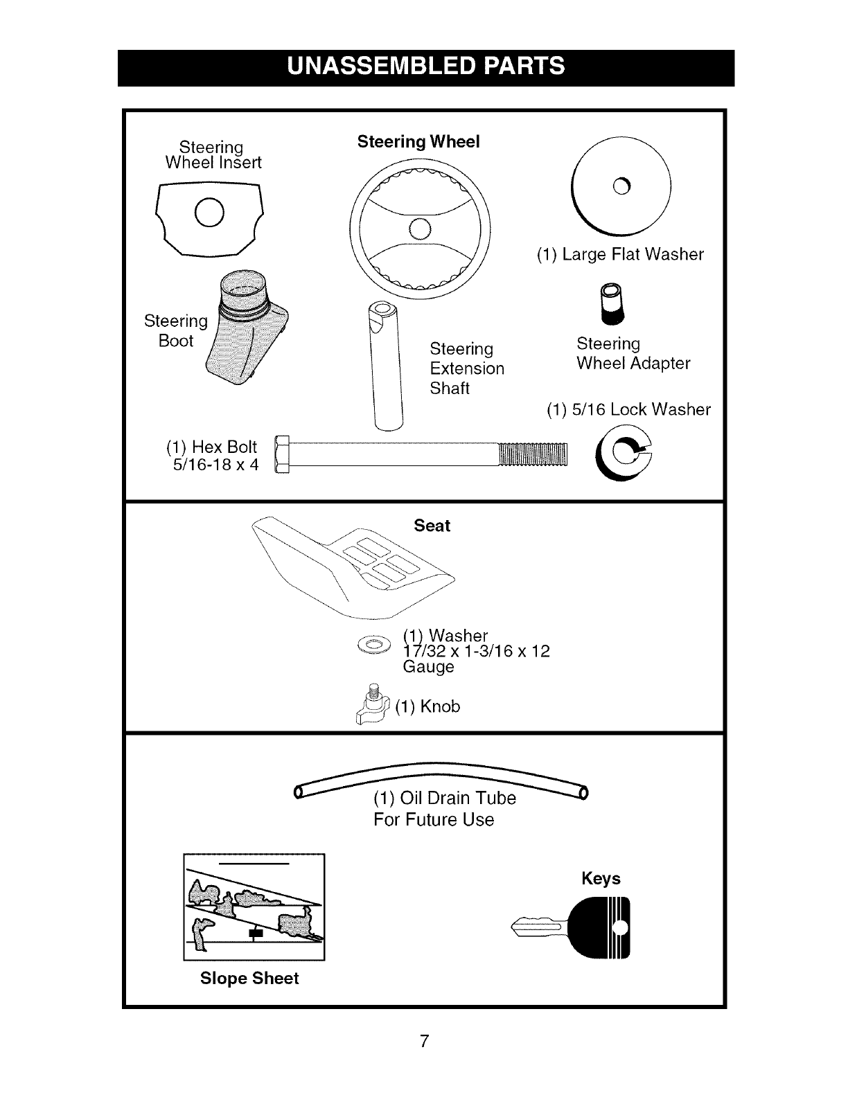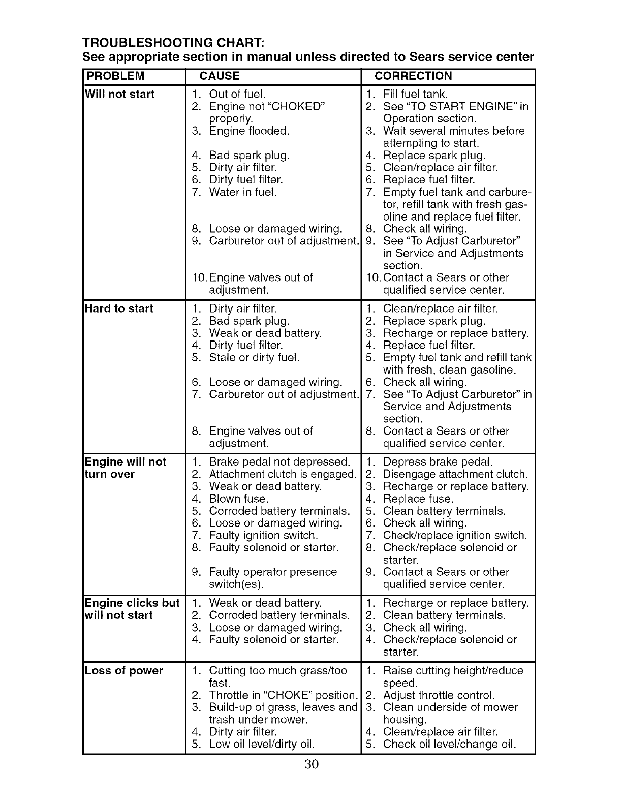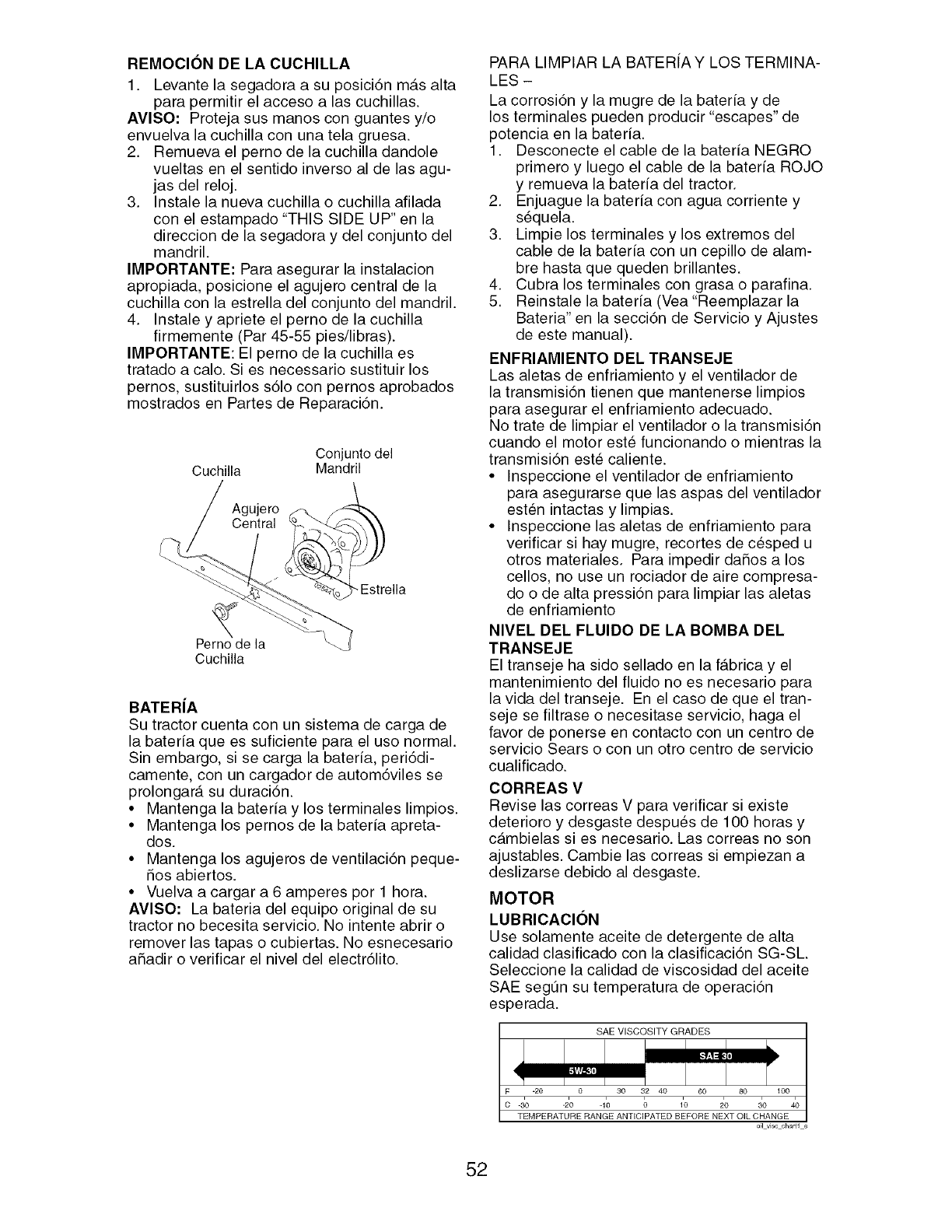 blades, spark plugs, air cleaners, belts, and oil filters.