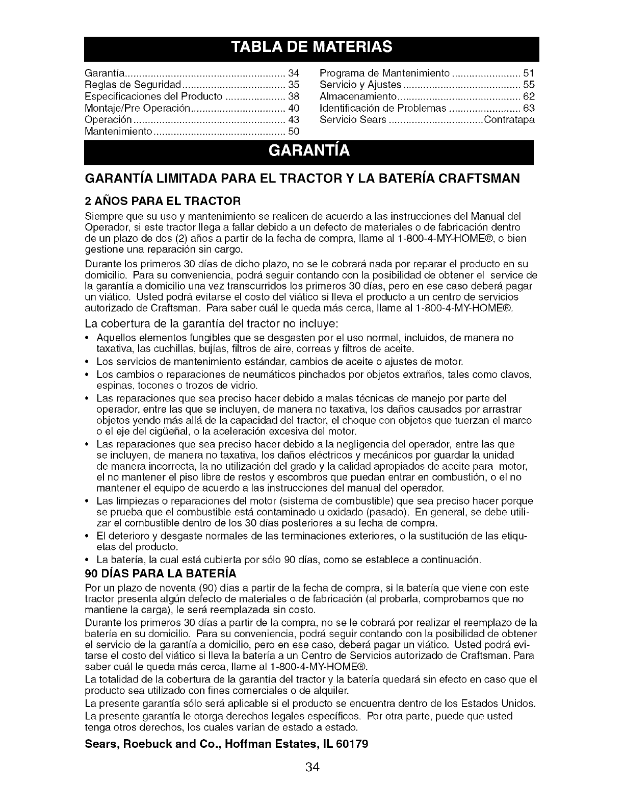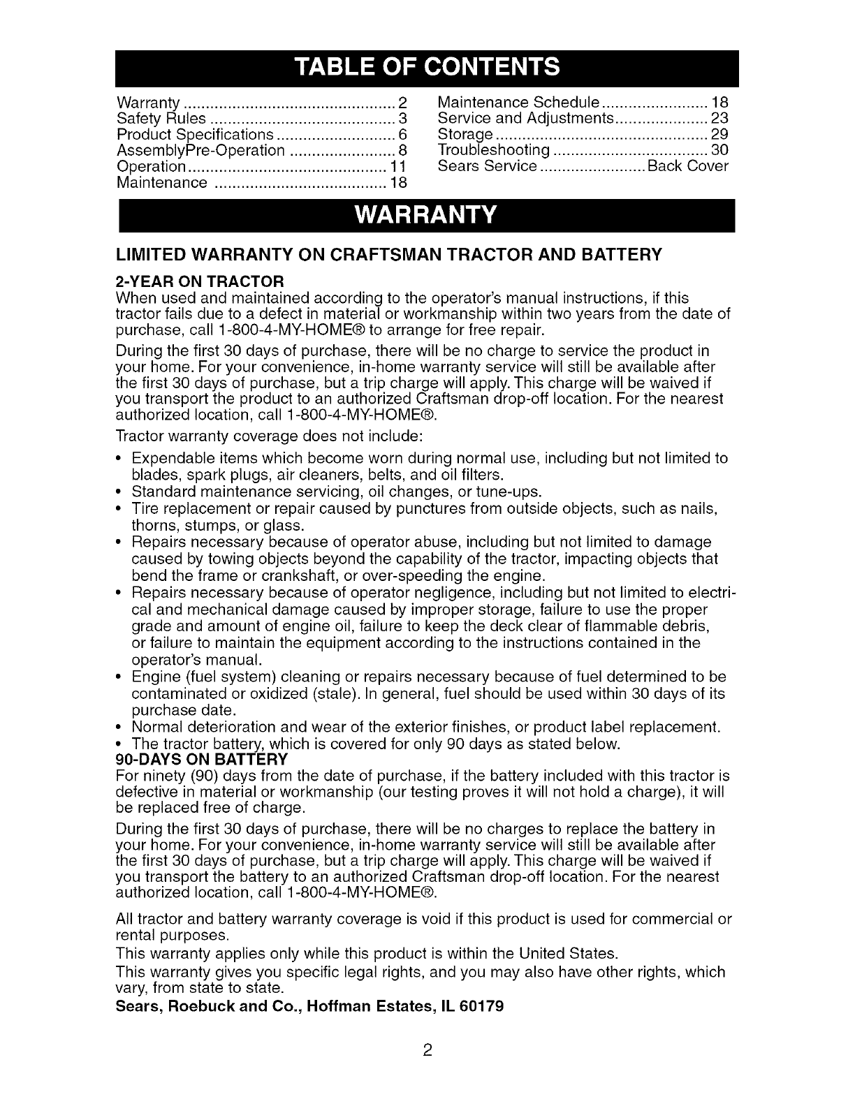LIMITED WARRANTY ON CRAFTSMAN TRACTOR AND BATTERY
