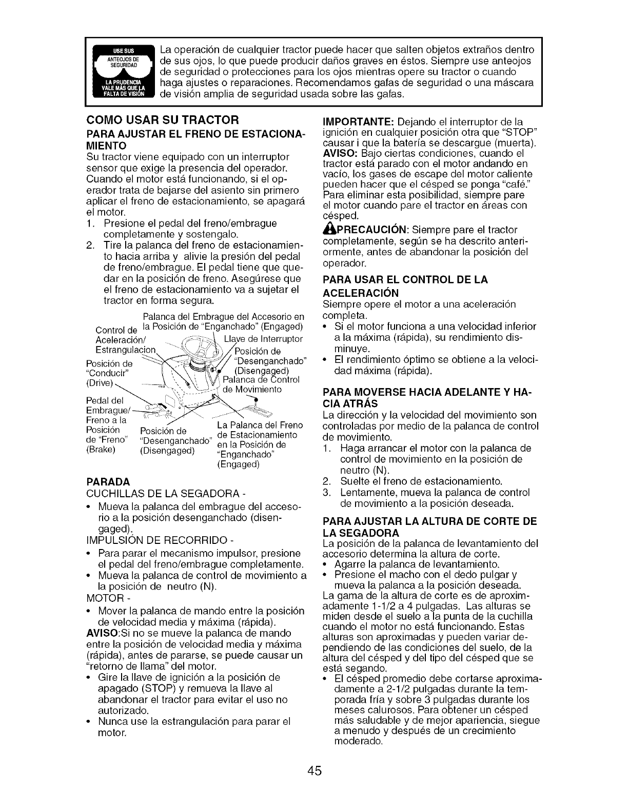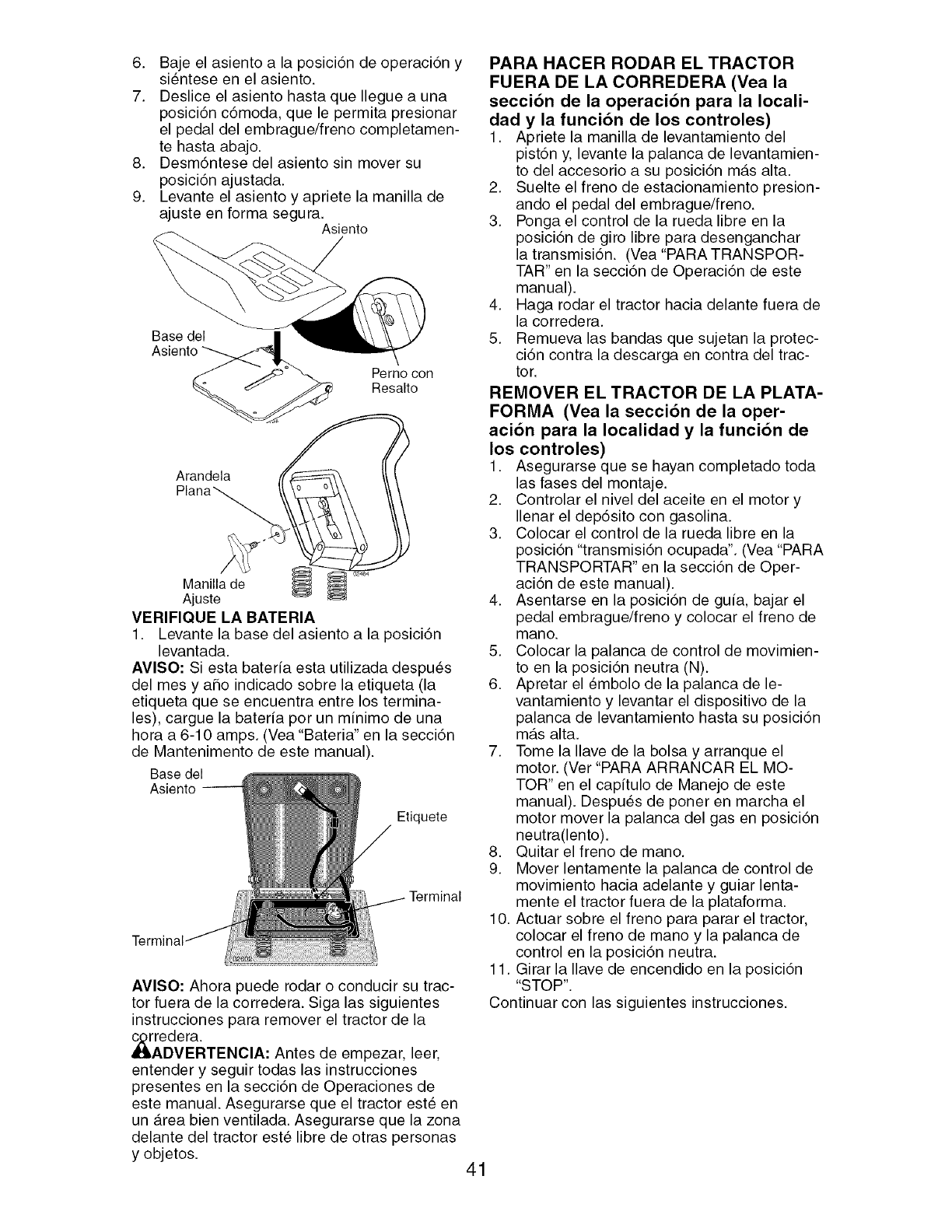 _b DVERTENCIA: Para evitar dafios graves, haga funcionar su tractor arriba