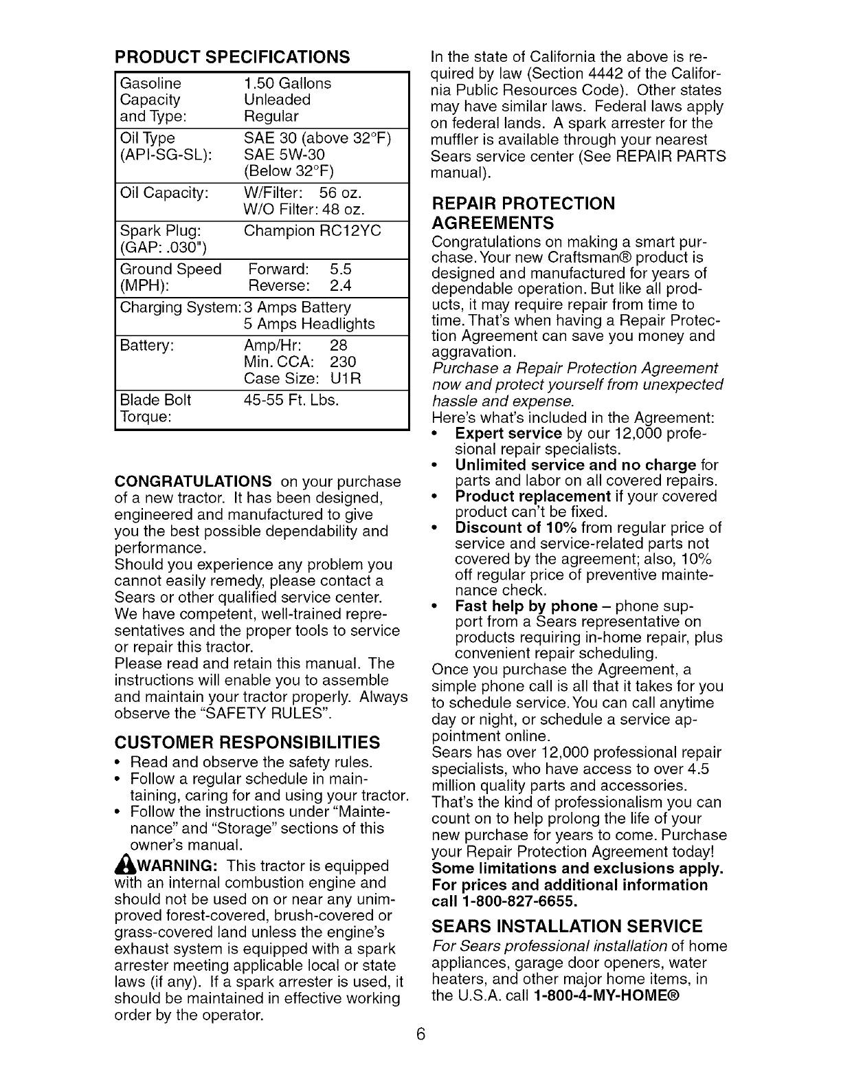 CRAFTSMAN Lawn, Tractor Manual L0604433 CRAFTSMAN Lawn, Tractor Owner's Manual, CRAFTSMAN Lawn, Tractor installation guides