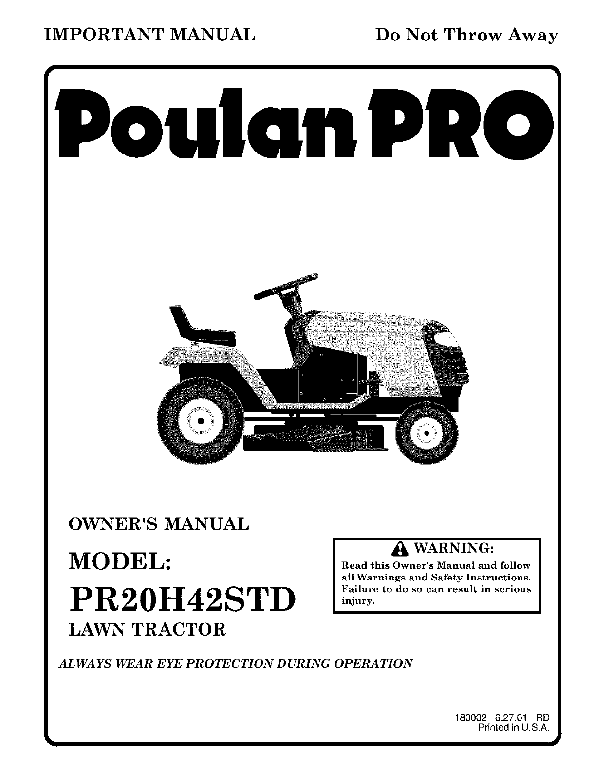 POULAN Lawn, Tractor Manual L0107024 POULAN Lawn, Tractor Owner's Manual, POULAN Lawn, Tractor installation guides