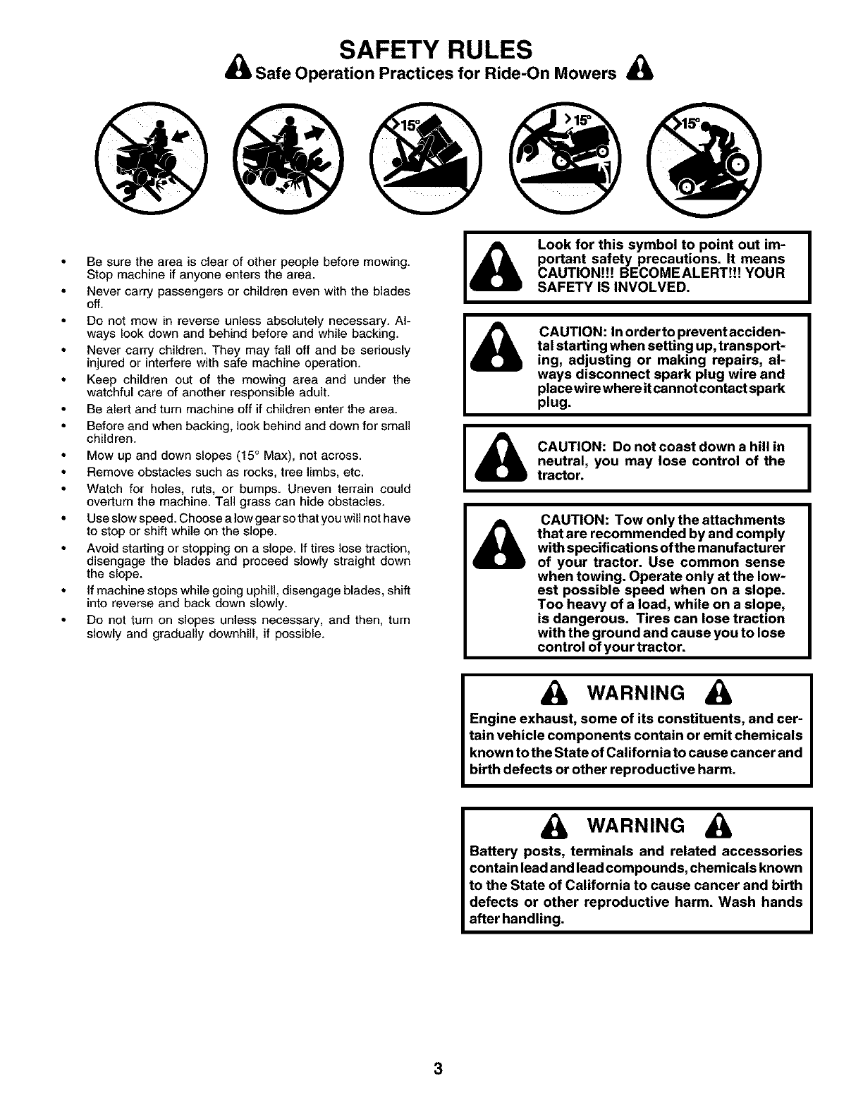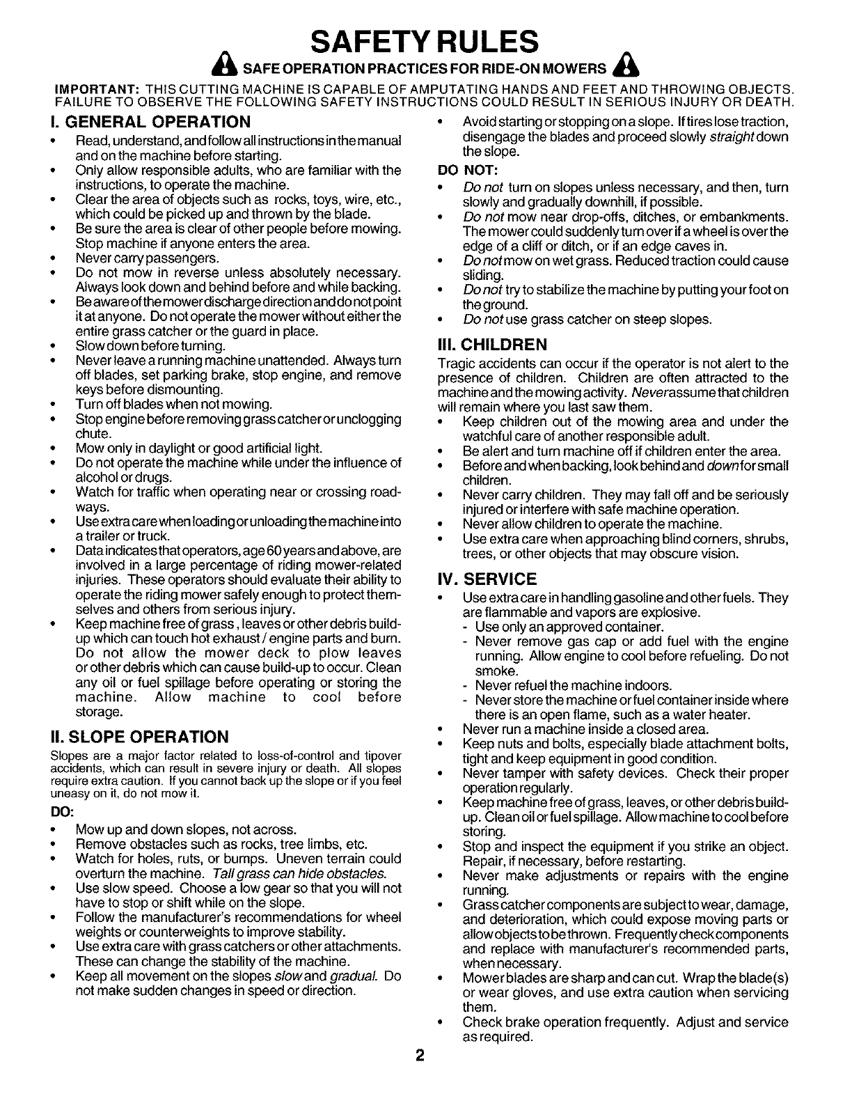 SAFE OPERATION PRACTICES FOR RIDE=ON MOWERS
