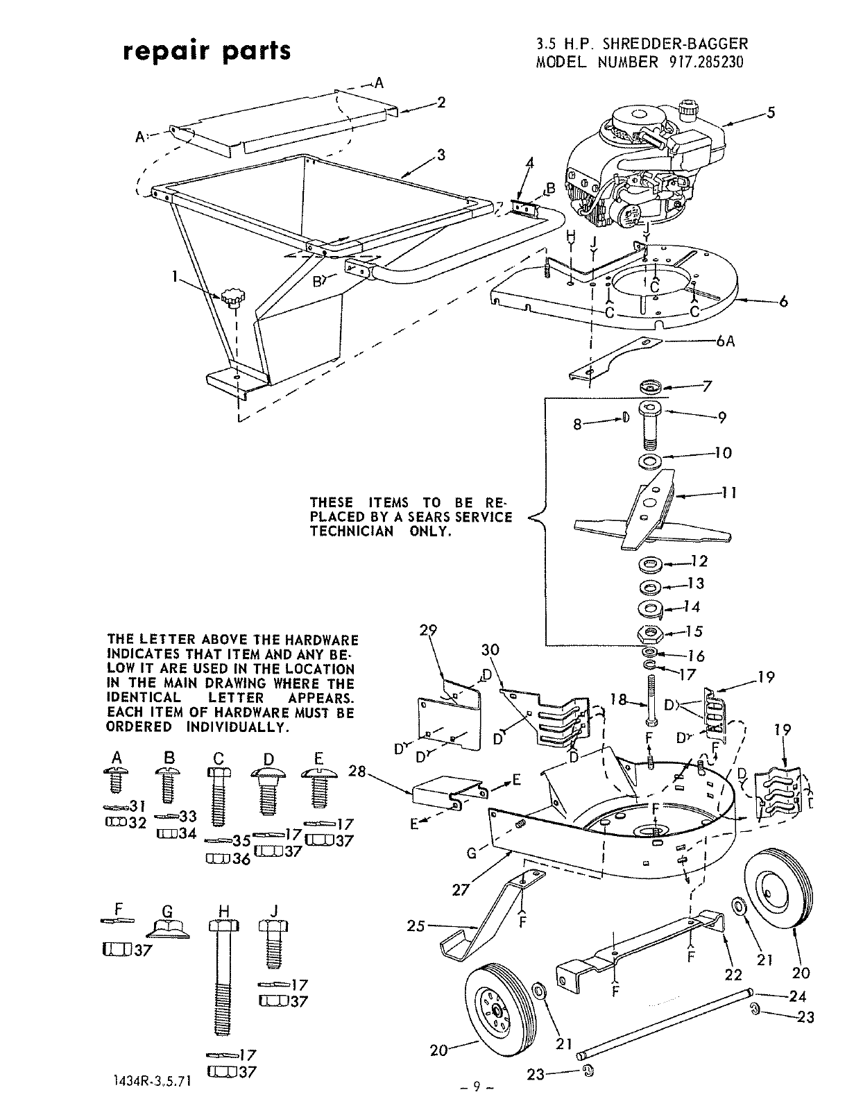 All parts listed herein may be ordered through SEARS,
