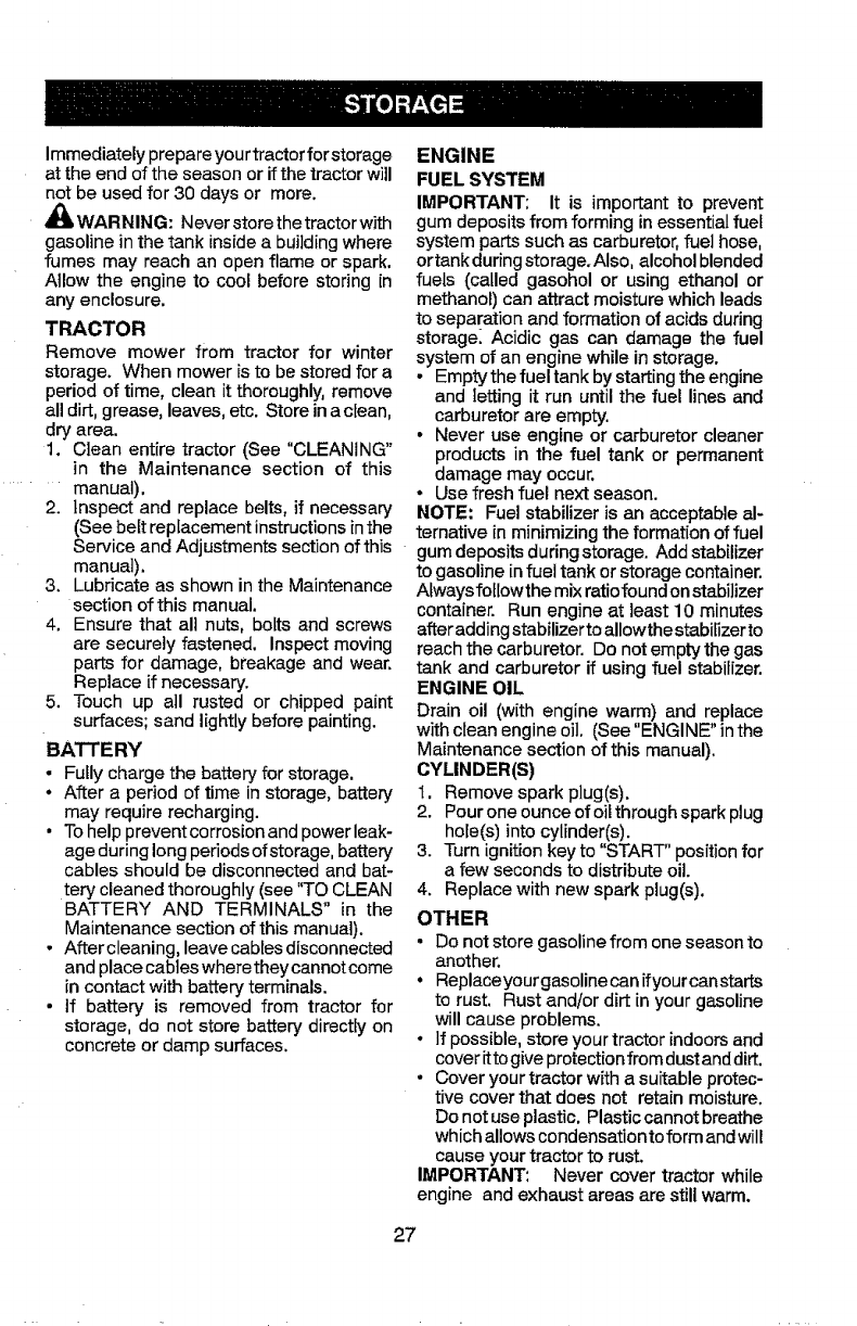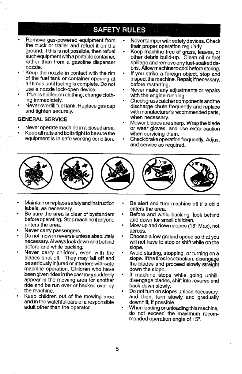 of engine oil, failure to keep the deck clear of flammable debris, or failure to maintain the riding