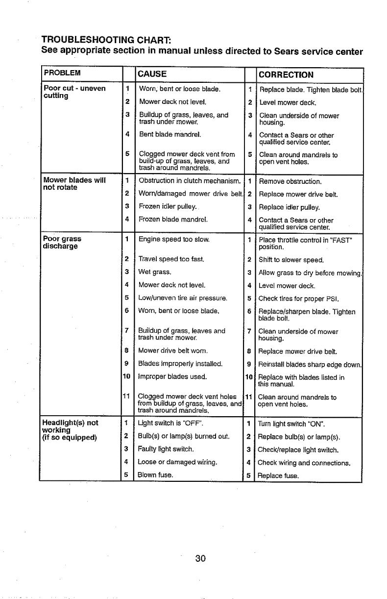 including but not limited to blades, spark plugs, air cleaners, belts, and oil filters.