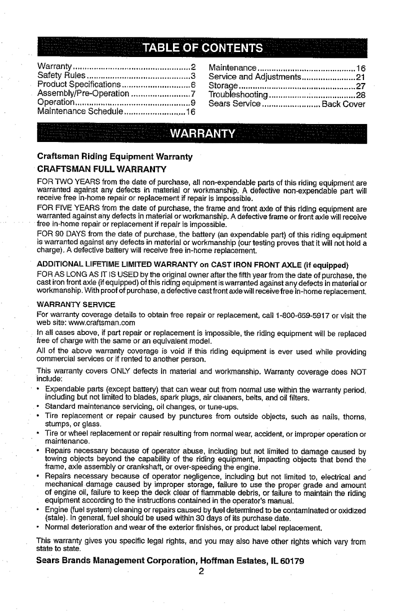 FOR TWO YEARS from the date of purchase, all non-expendable parts ofthis ridingequipment are
