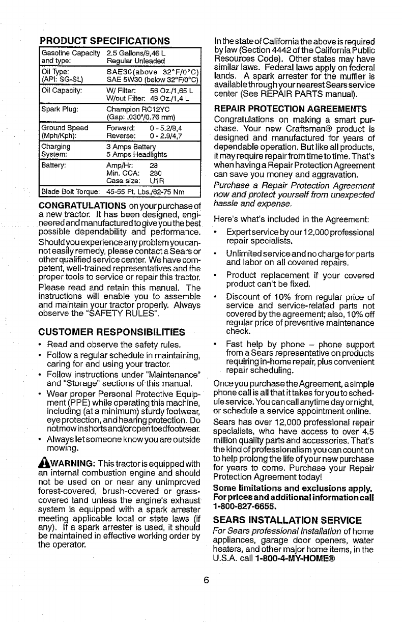 Craftsman 917288515 User Manual TRACTOR Manuals And Guides 1109549L