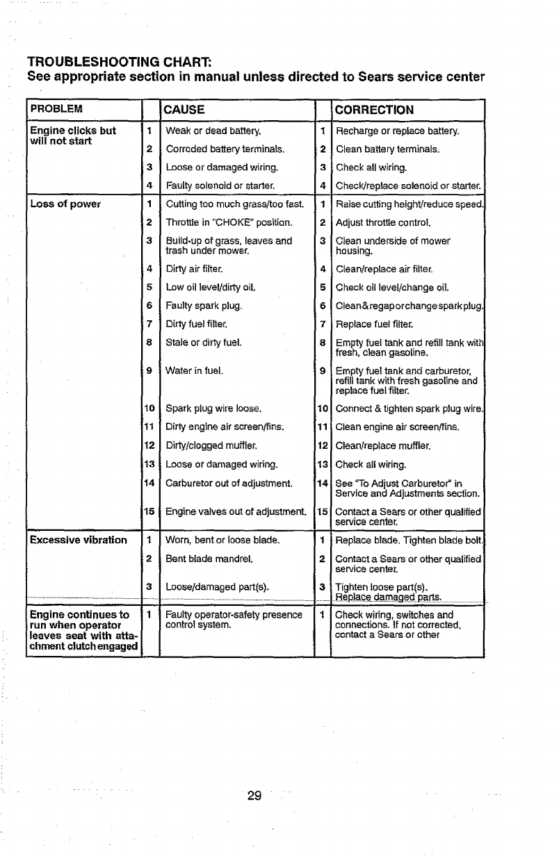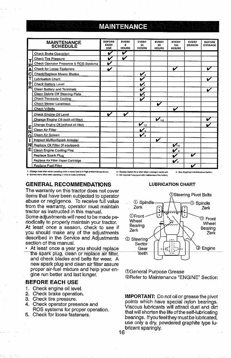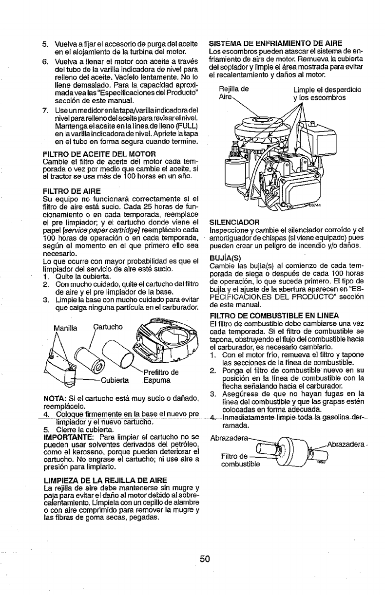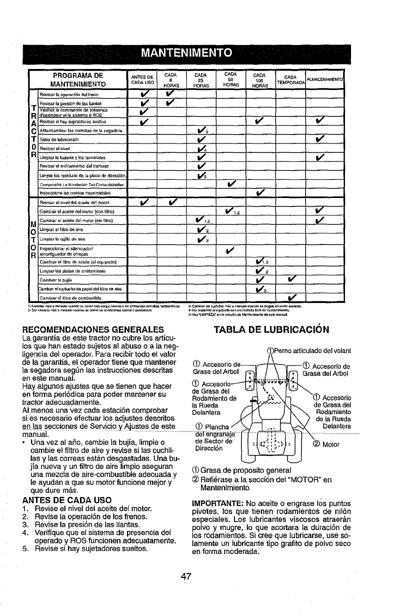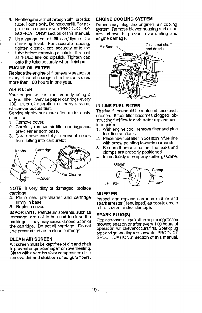includingbut not limitedto blades, spark plugs, air cleaners, belts,and oilfilters.