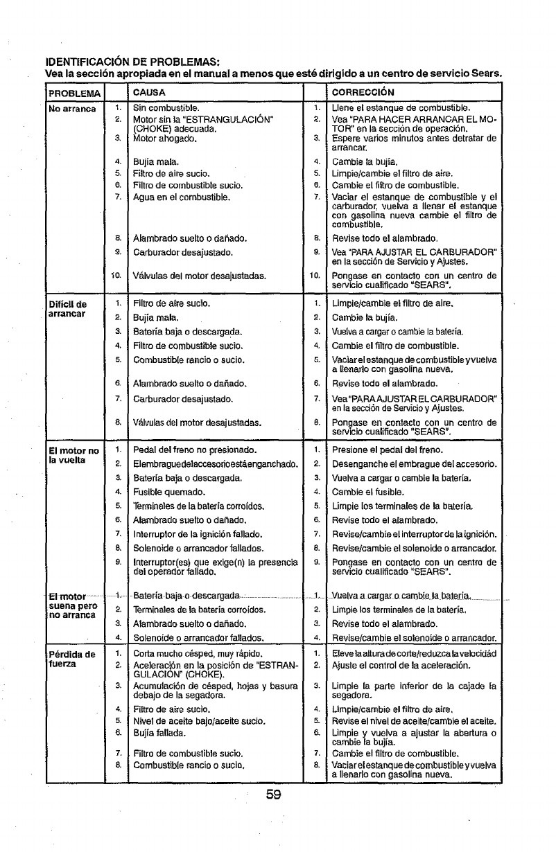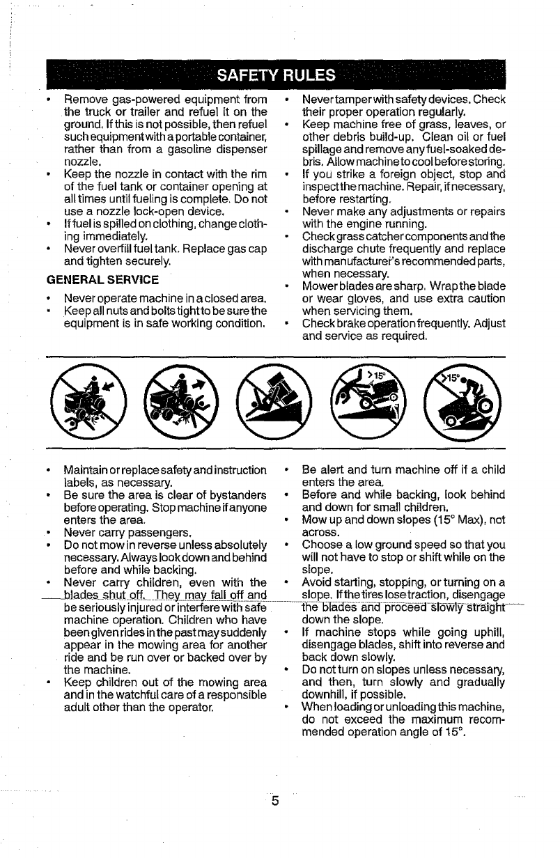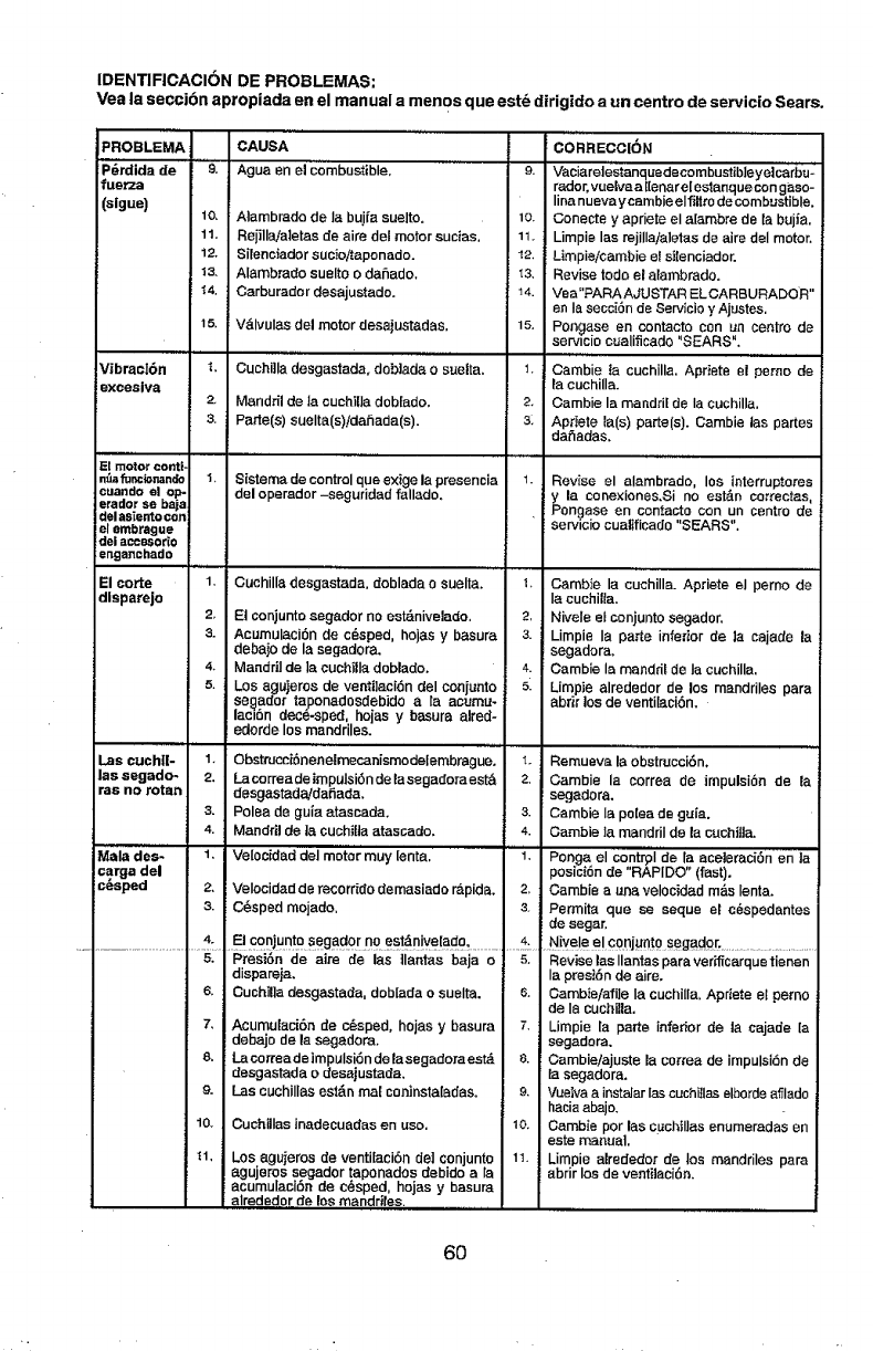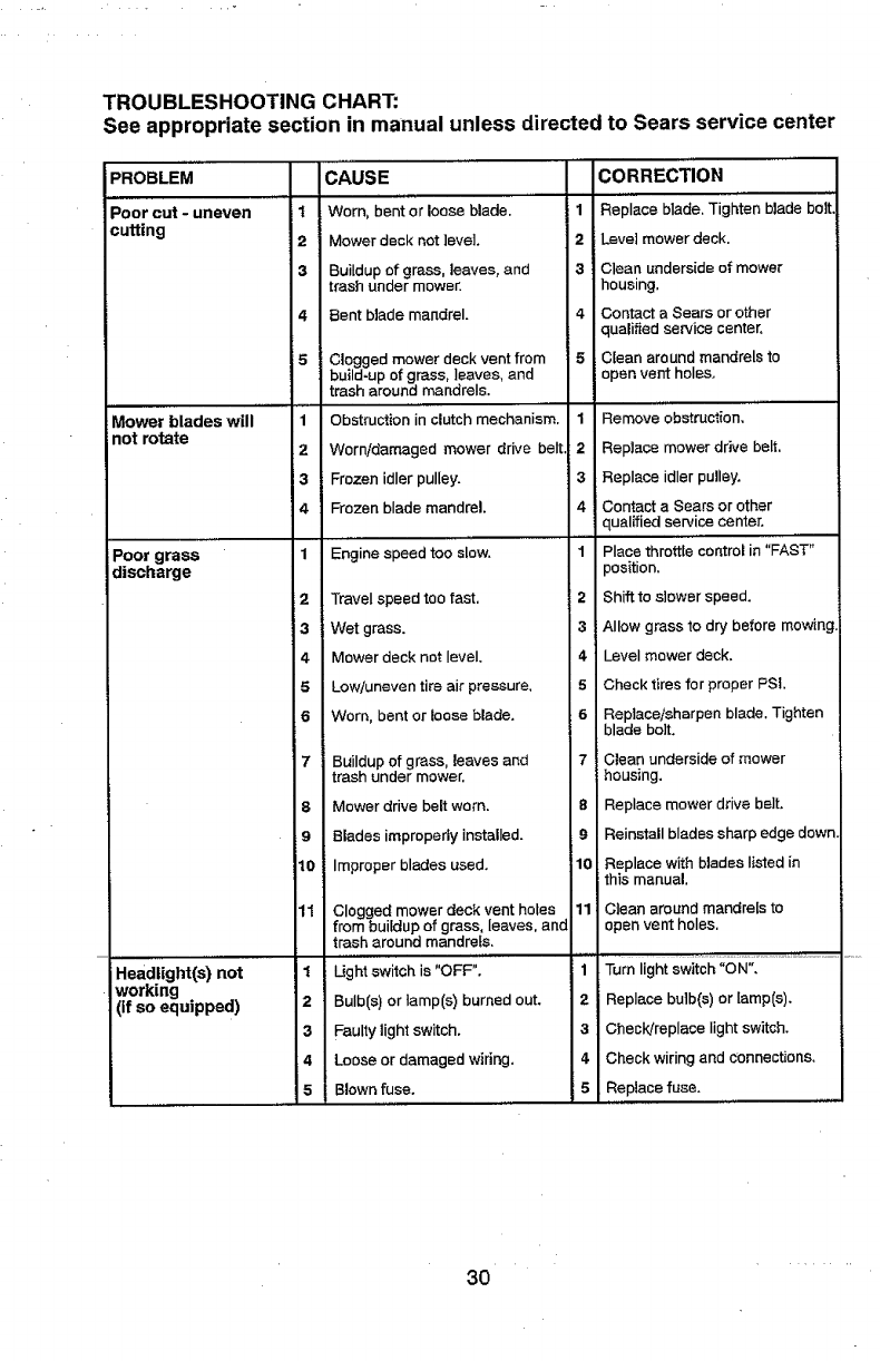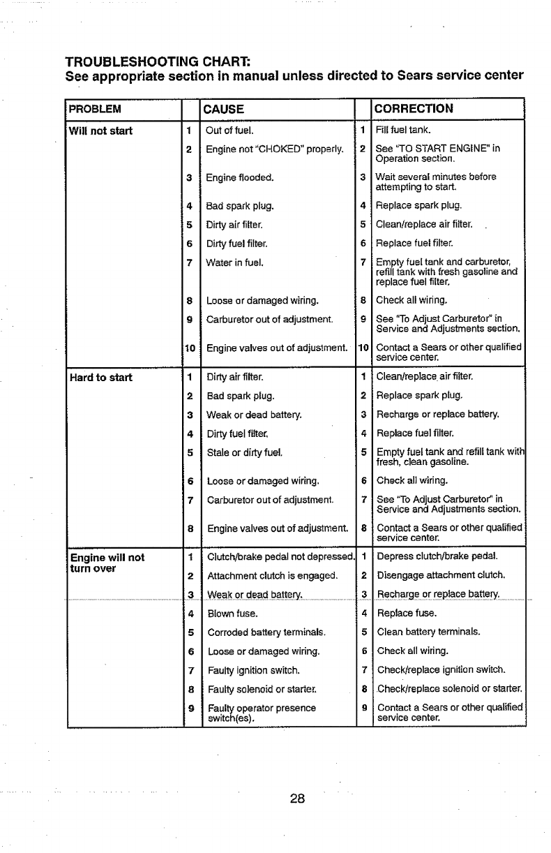 includingbut not limitedto blades, spark plugs, air cleaners, belts,and oilfilters.