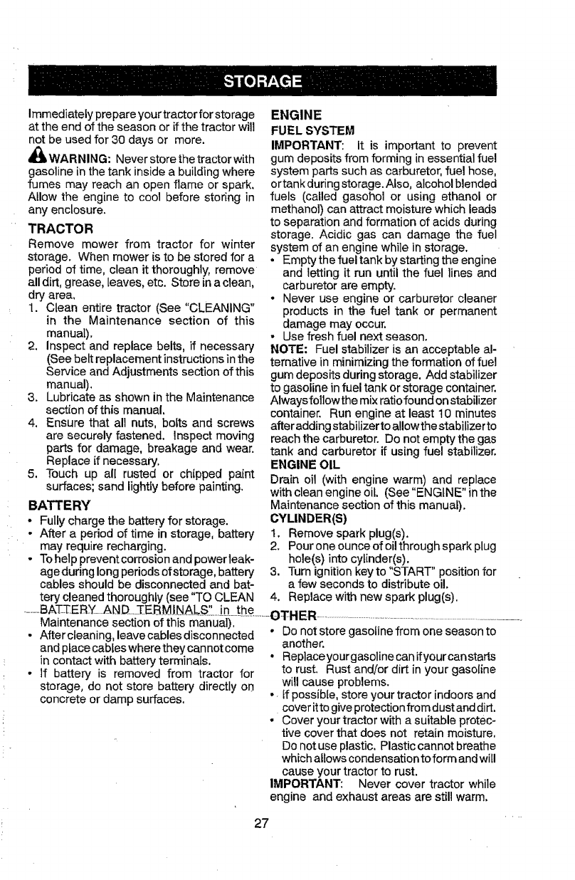 Storage .................................................. 27
