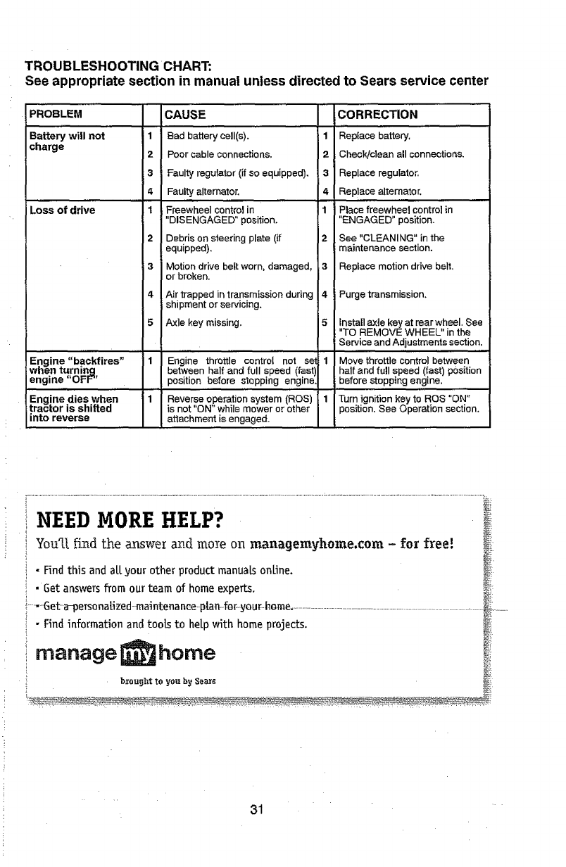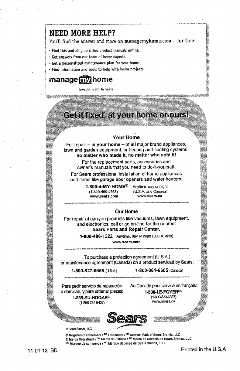Sears Service ......................... Back Cover