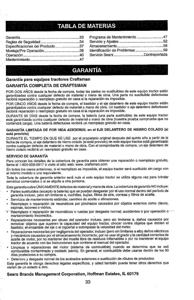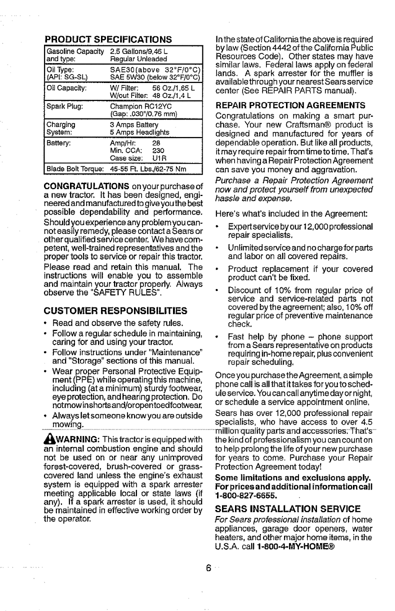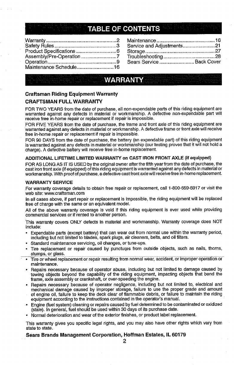 Craftsman Riding Equipment Warranty