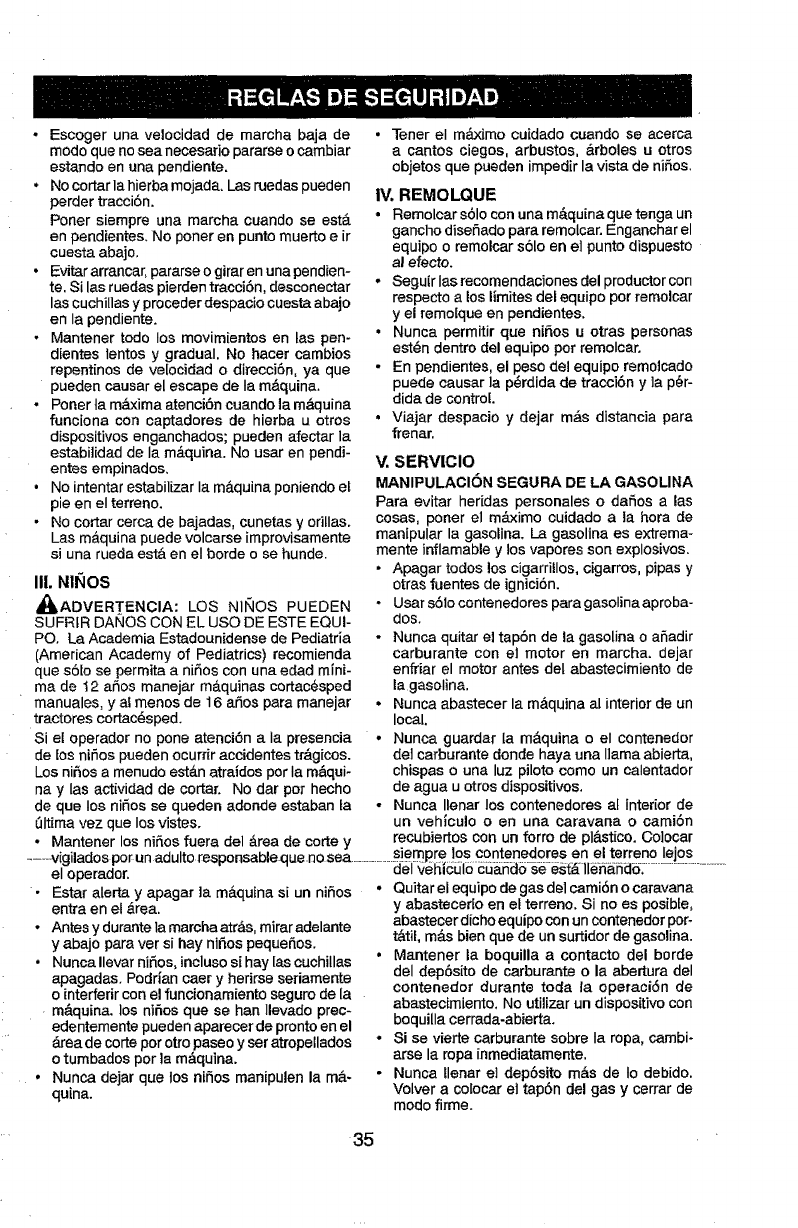 _WARNING: Do not coast down a hill in .Do not operate machine without the on-