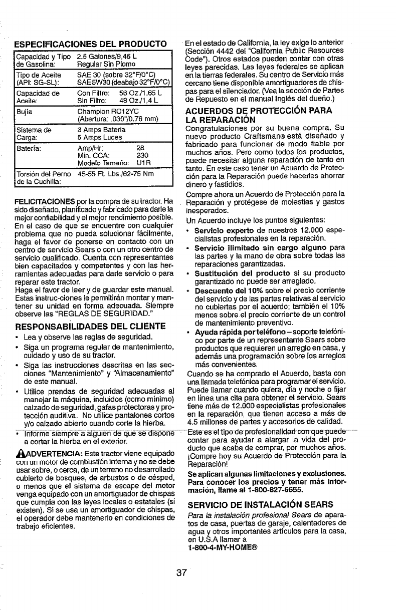 Visit our Craftsman website:www, sears.com/craftsman *Asratedbytheengineman_'Pacturer
