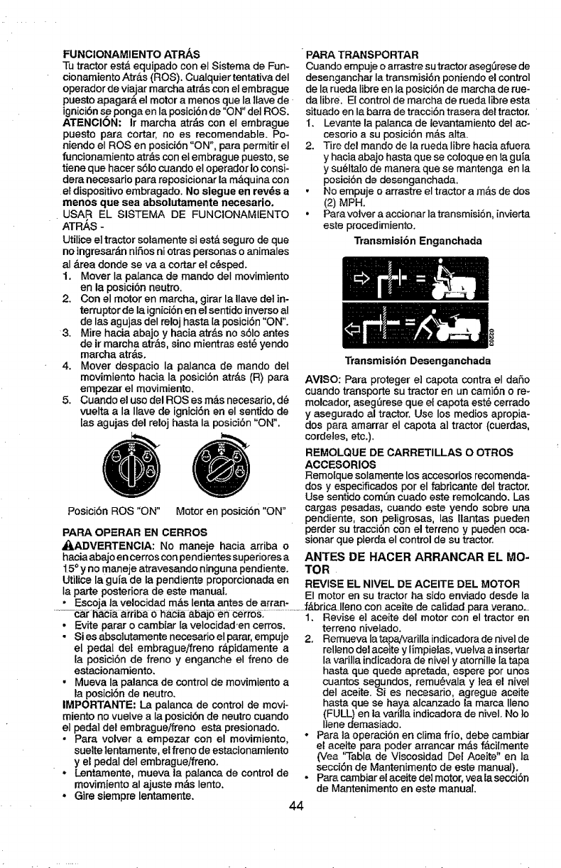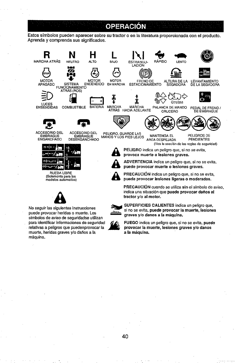 _1 DVERTENCIA: Para _vitar da_os graves, haga funclonar SU tractor arrlba
