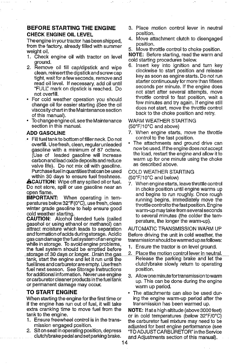 Craftsman 917288516 User Manual TRACTOR Manuals And Guides 1212302L