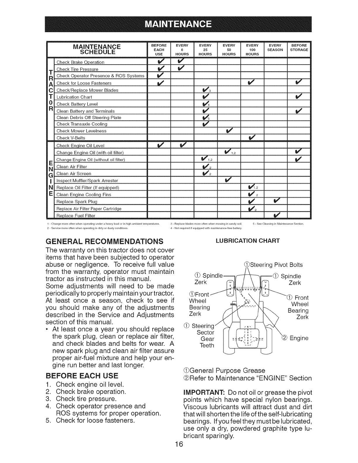 of engine oil, failure to keep the deck clear of flammable debris, or failure to maintain the riding