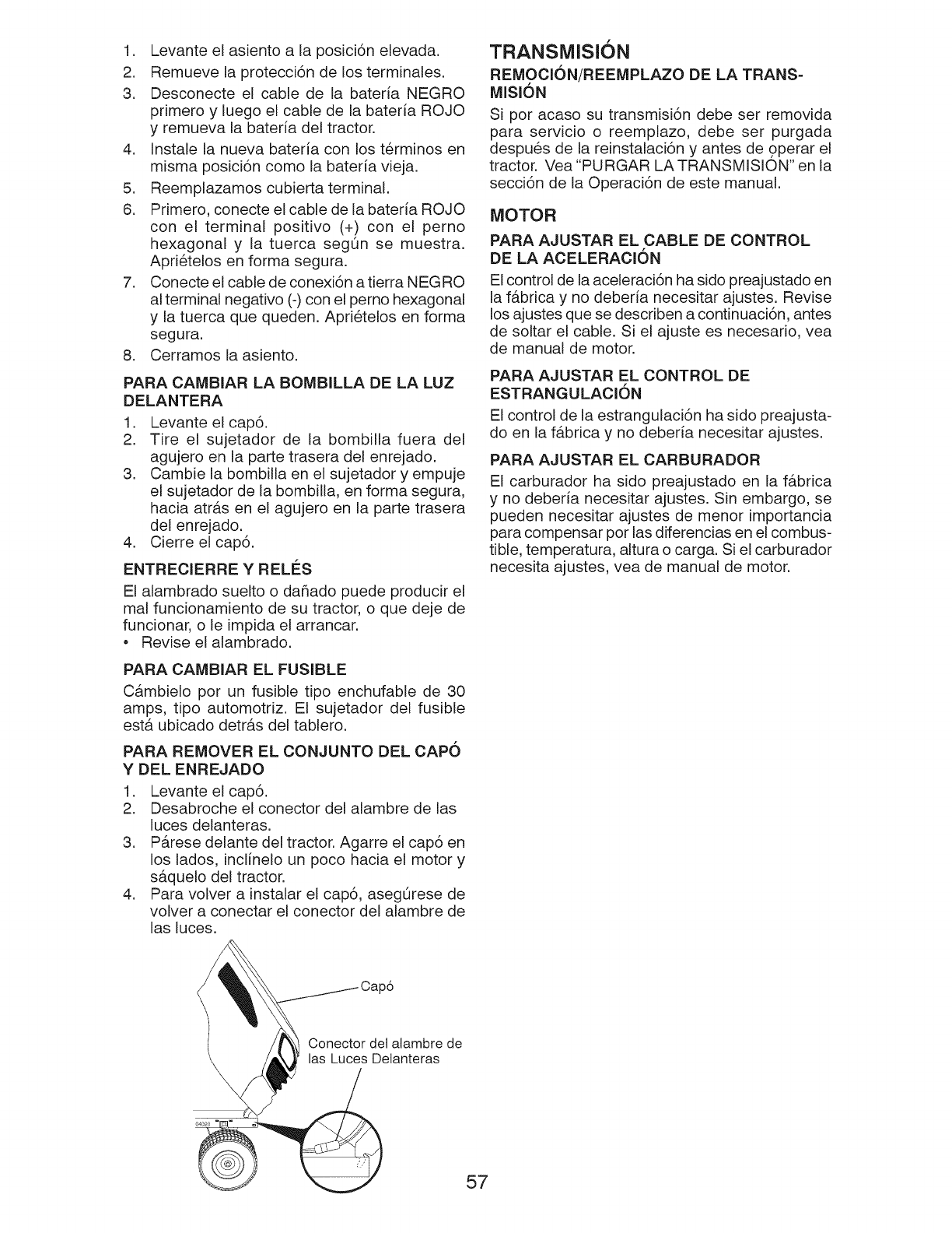 ADVERTENCIA: Para evitar daRos graves, haga funcionar su tractor arriba I