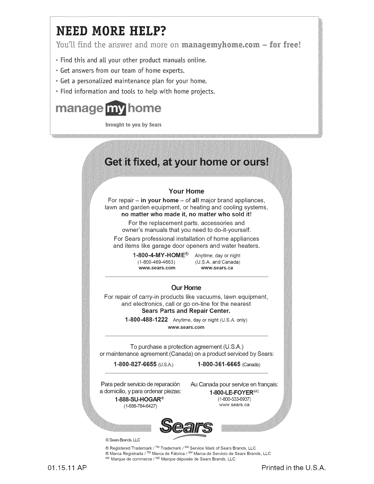 ® Registered Trademark /TMTrademark /SMService Mark of Sears Brands, LLC