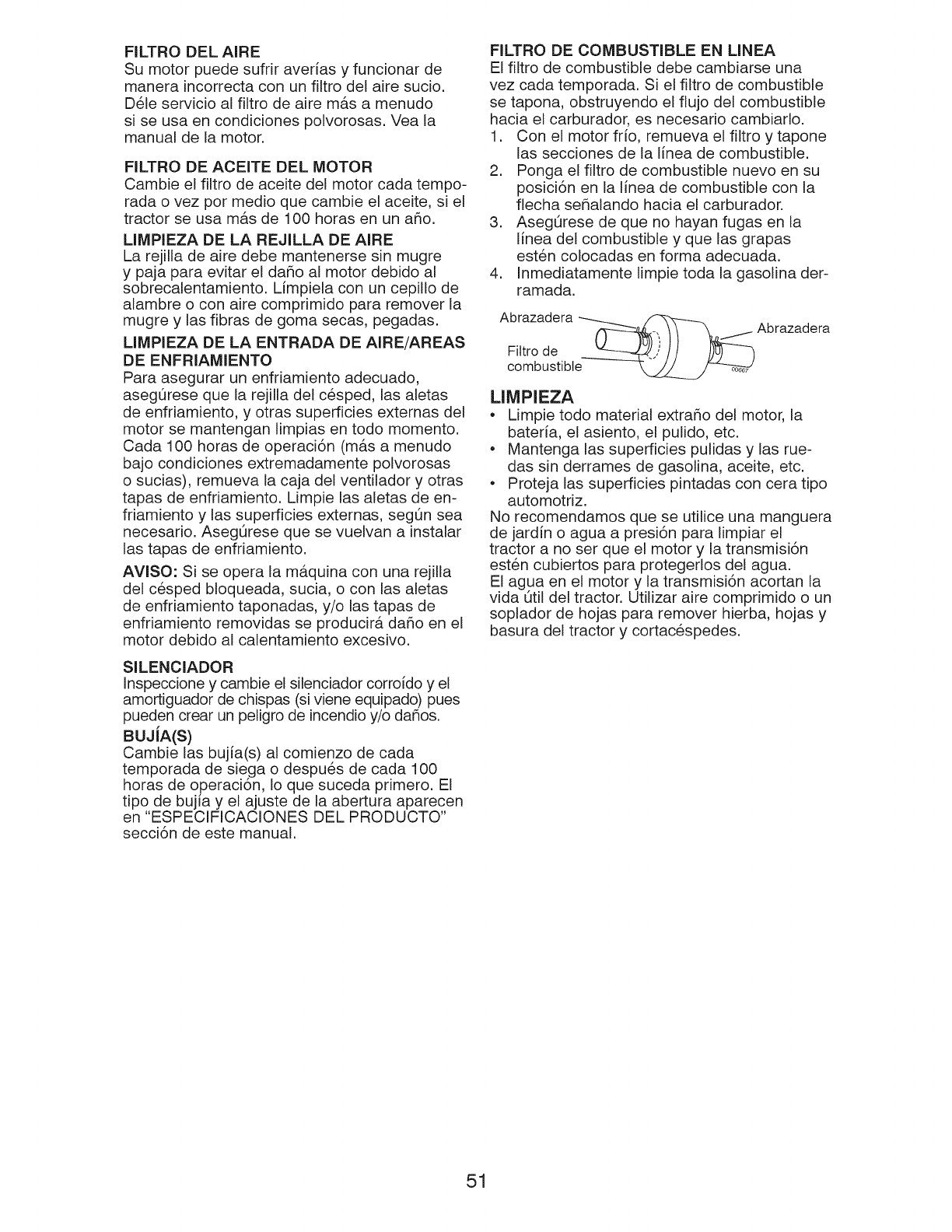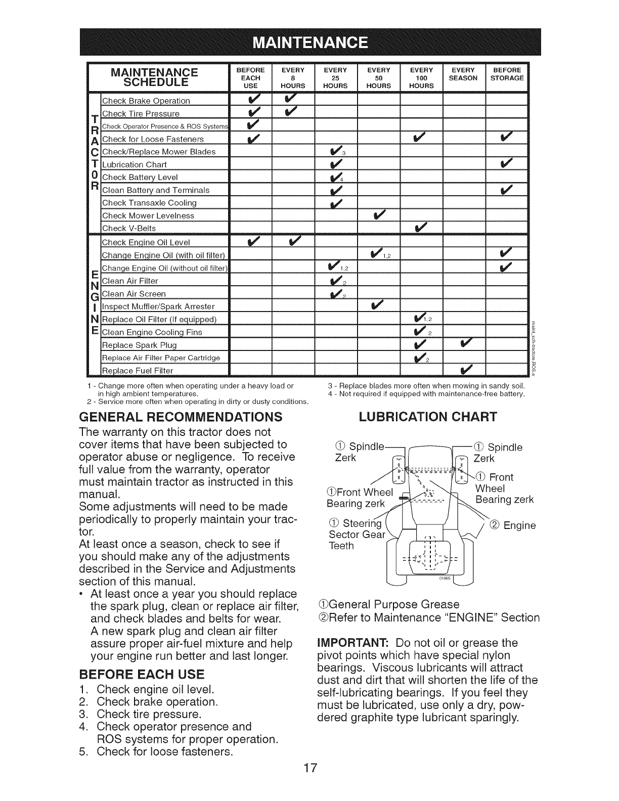 blades, spark plugs, air cleaners, belts, and oil filters.