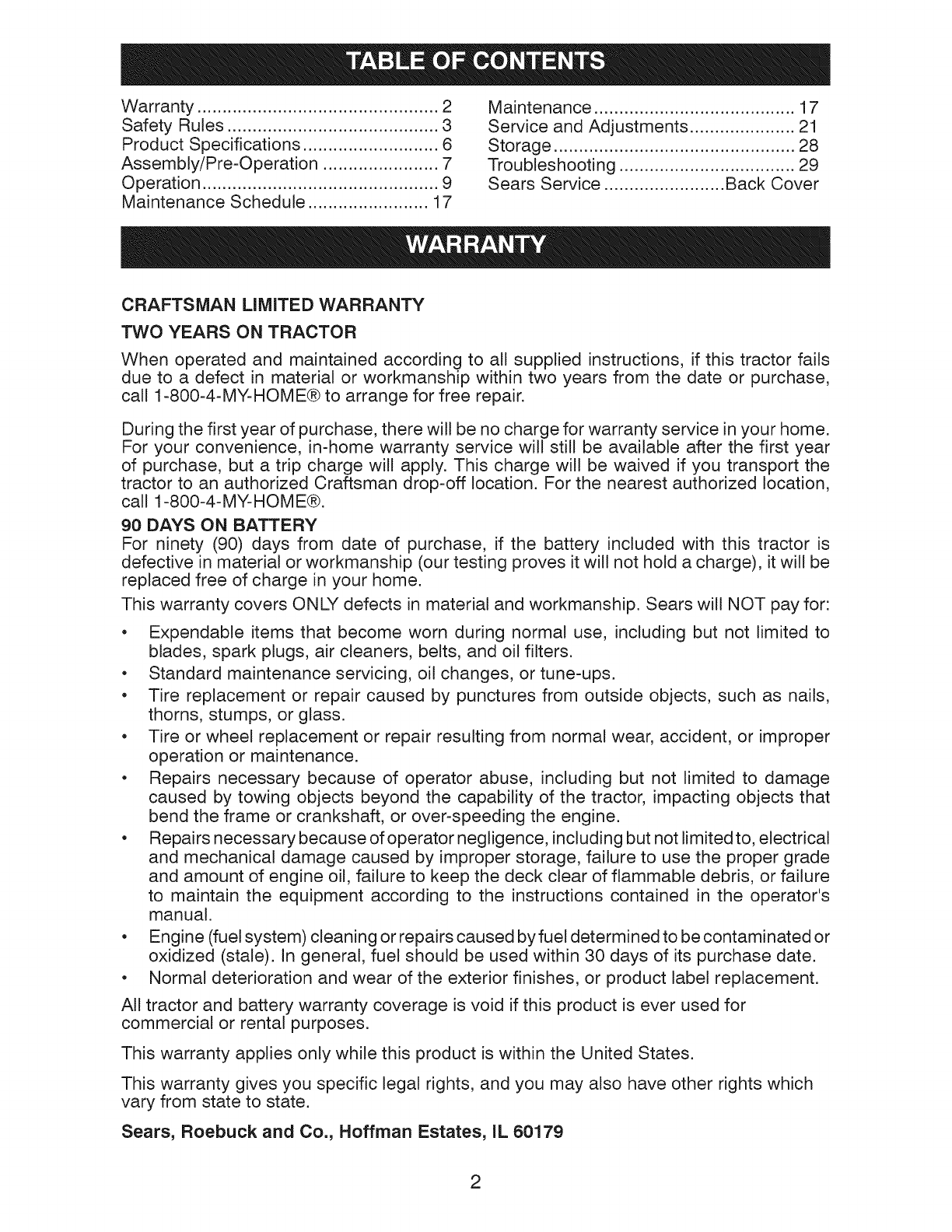 Craftsman 917289281 User Manual TRACTOR Manuals And Guides L0904627