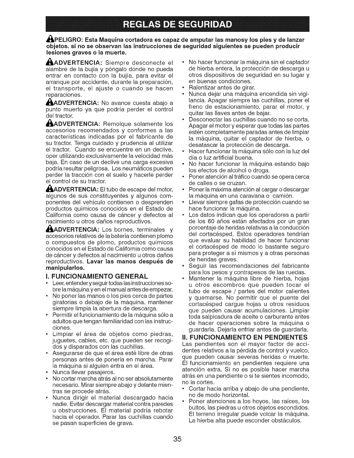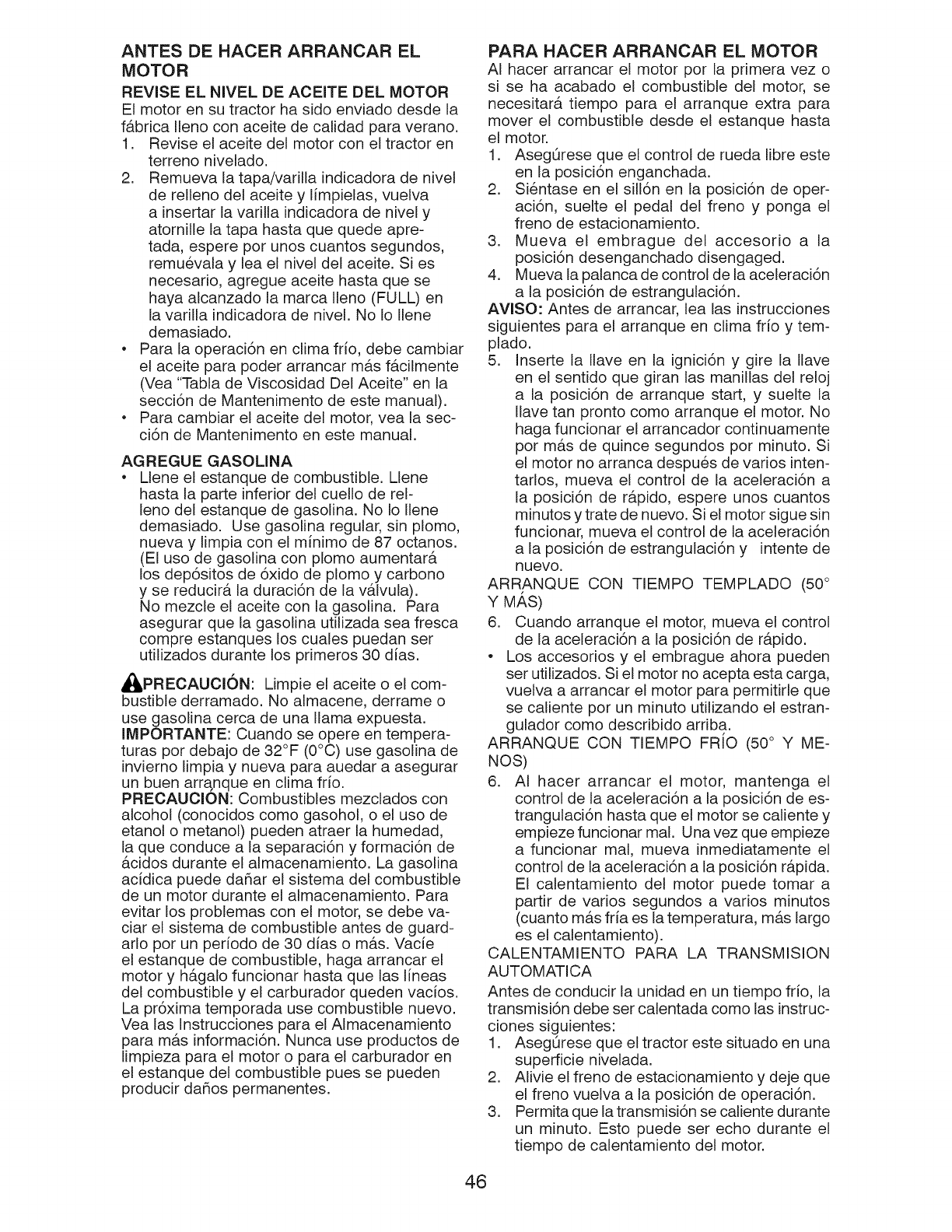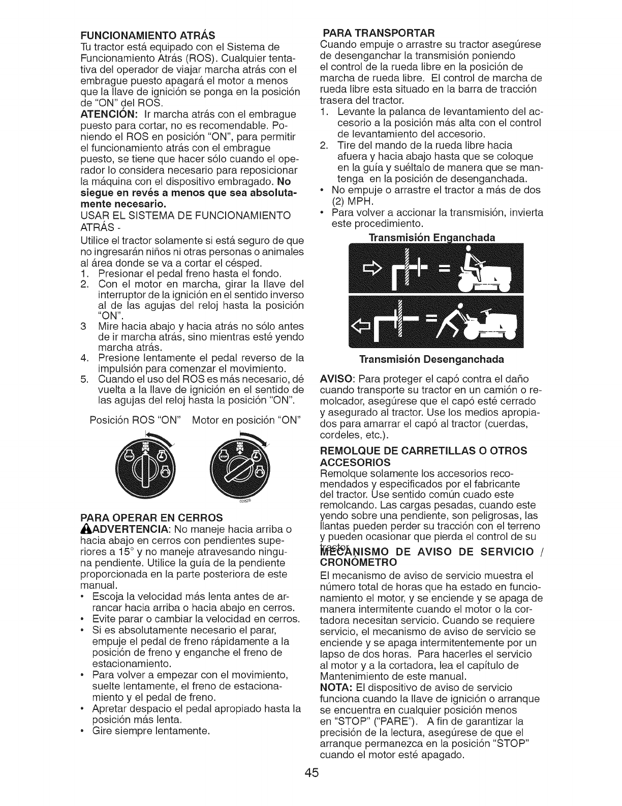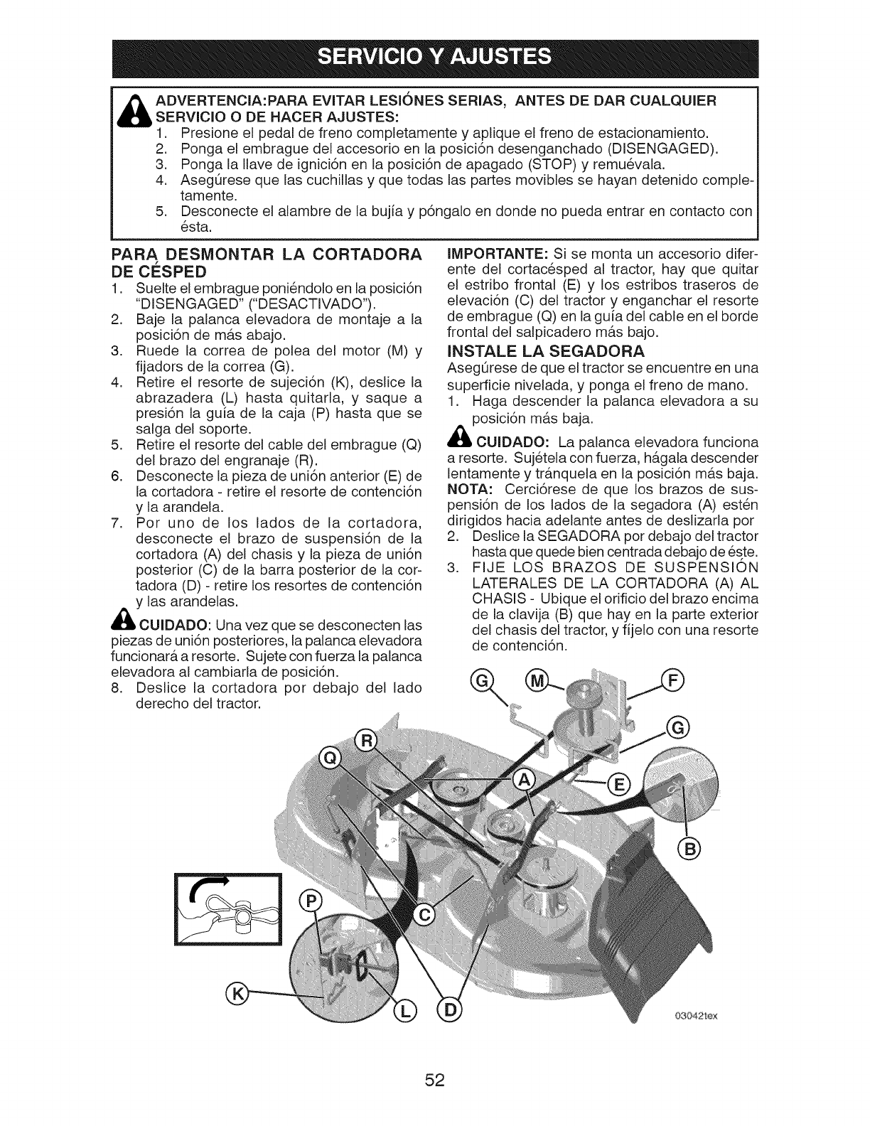 ADVERTENCIA: Para evitar daRos graves, haga funcionar su tractor arriba I