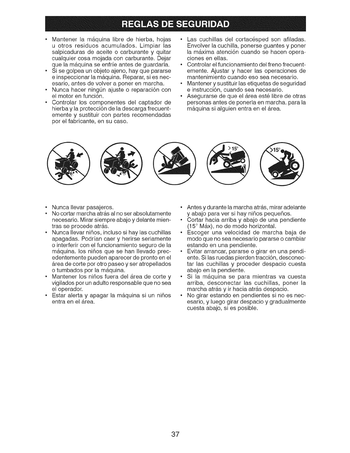 and amount of engine oil, failure to keep the deck clear of flammable debris, or failure