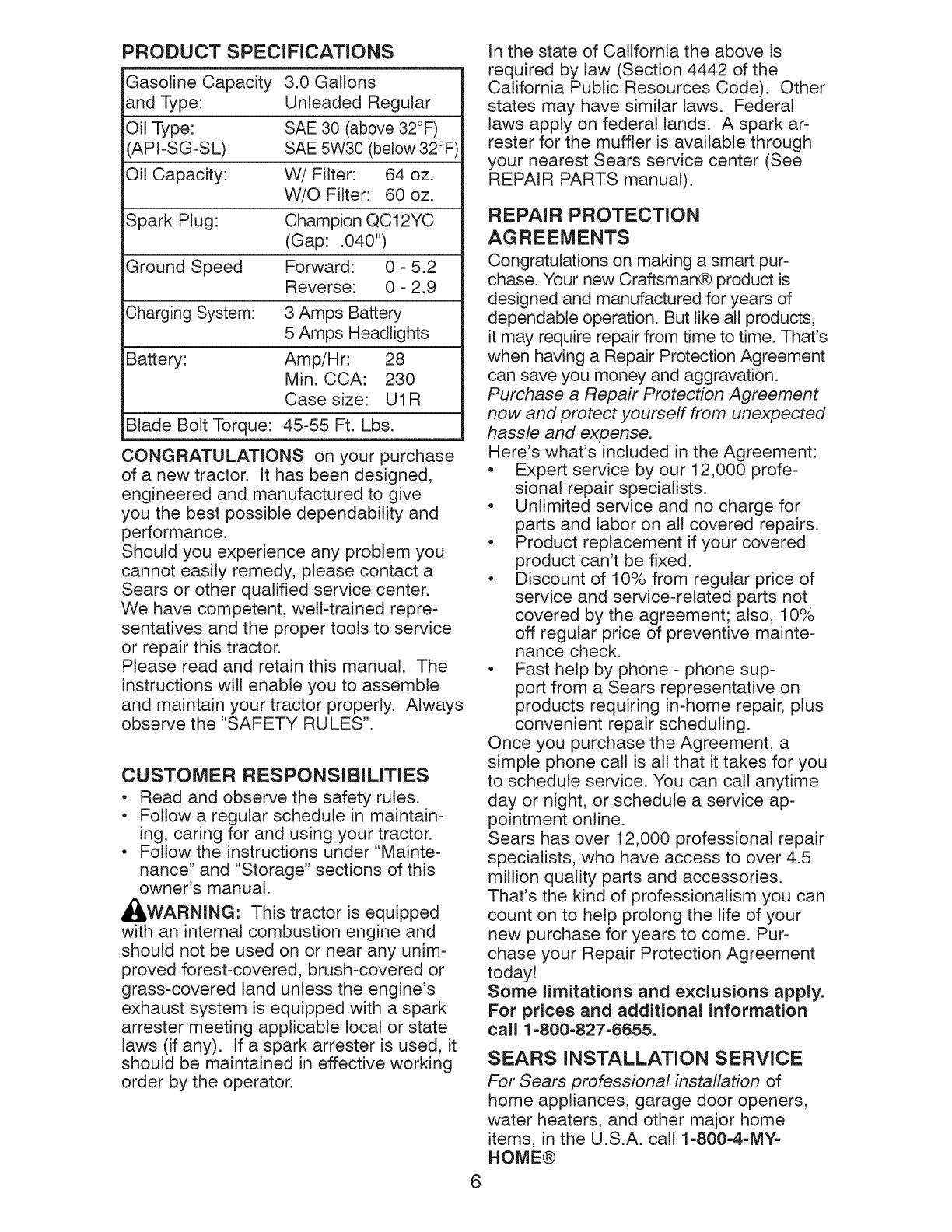 Visit our Craftsman website:www.sears.com/craftsman *As rated by the engine manufacturer